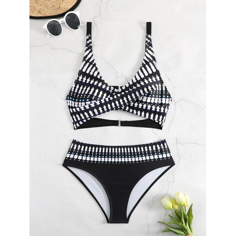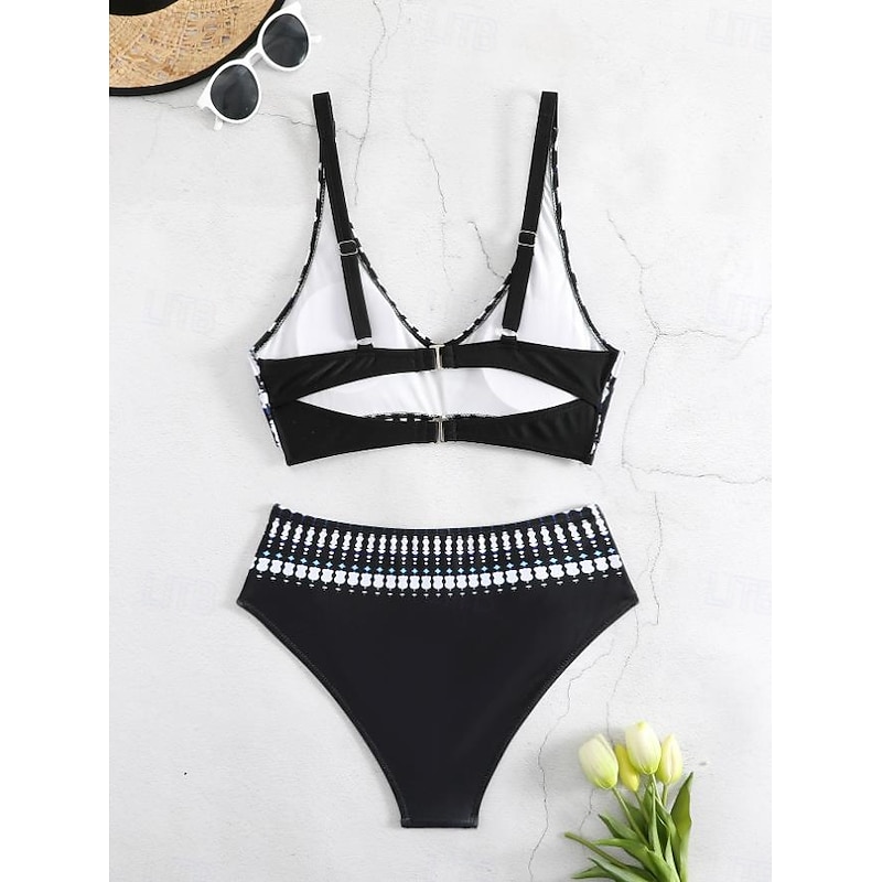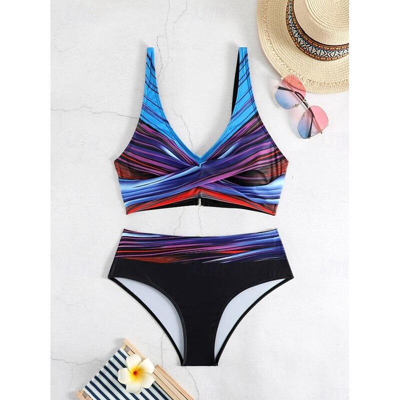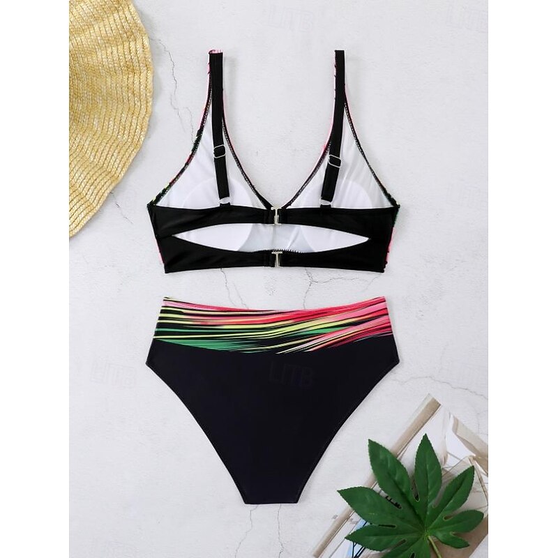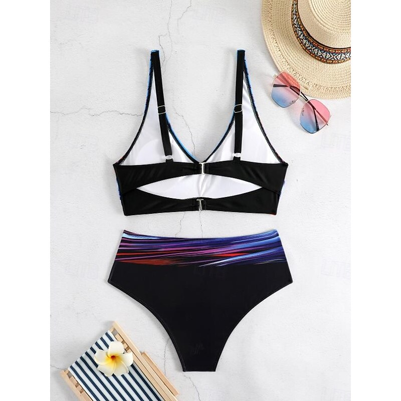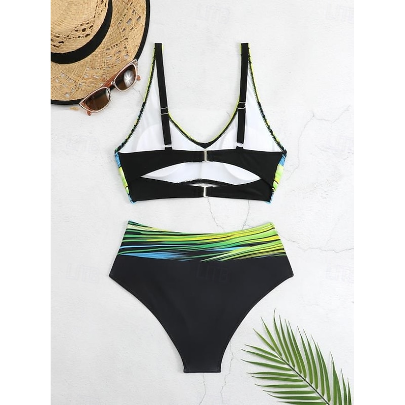 HOT ! Women's Swimwear Bikini 2 Piece Cheeky Swimsuit Backless Slim Vacation Beach Wear Color Block V Neck Sleeveless Bathing Suits