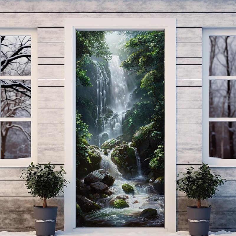 HOT ! Landscape Waterfall Door Covers Door Tapestry Door Curtain Decoration Backdrop Door Banner for Front Door Farmhouse Holiday Party Decor Supplies
