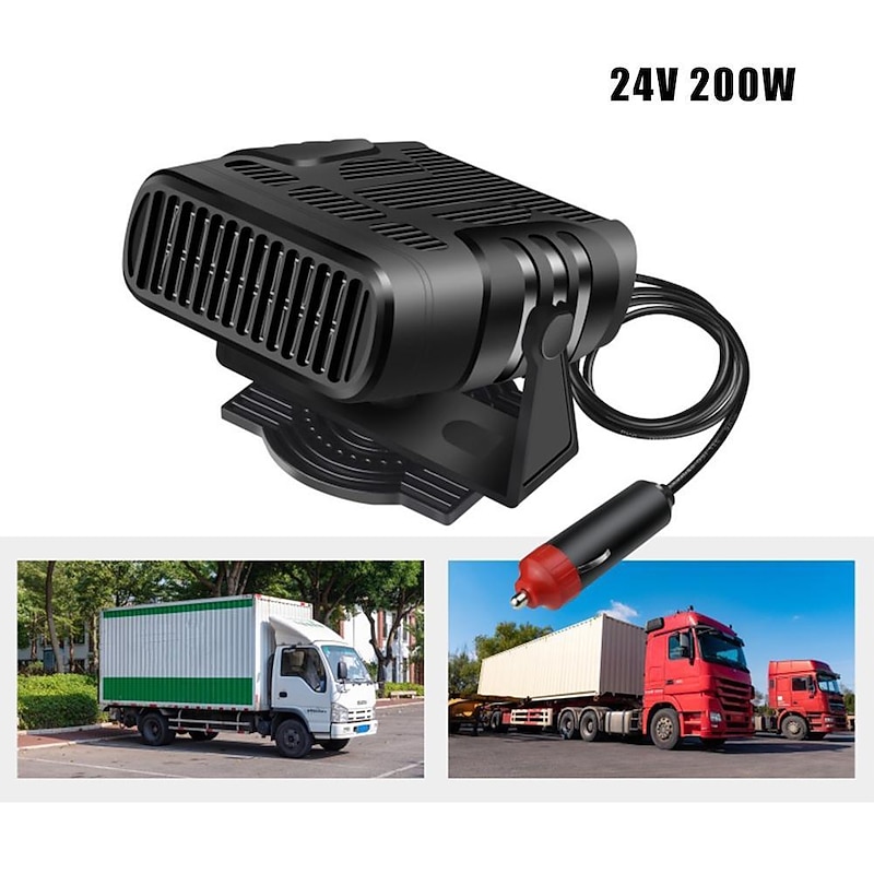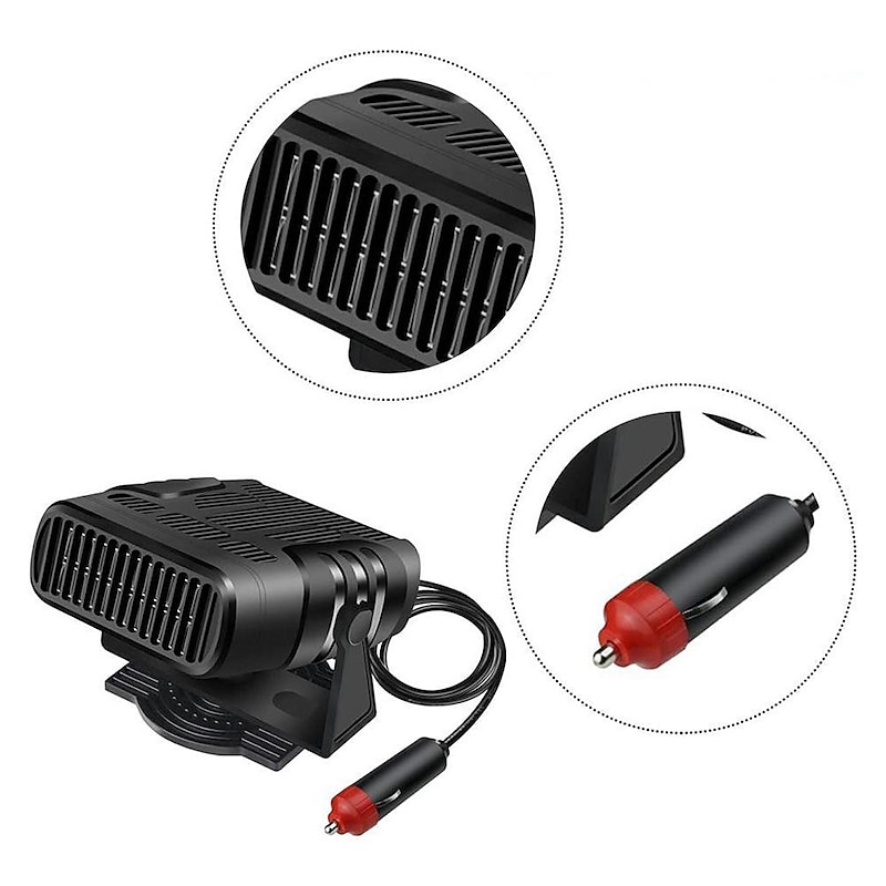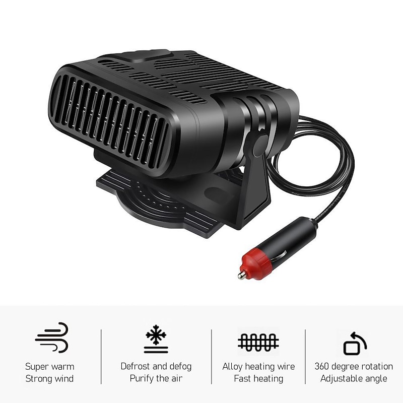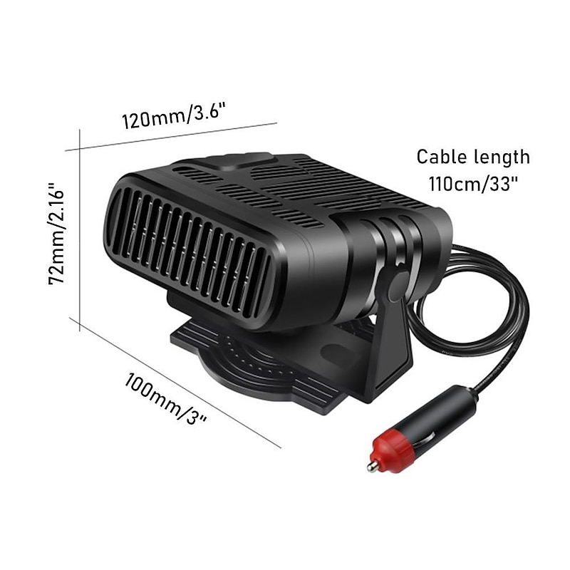 Highlights Product Selling Points: 1. 2 gears fan and heating function for versatile use. 2. Four major functions: defrost, defog, heating, and cooling. 3. Easy to use, simply plug it into your vehicle's cigarette socket and turn it on. 4. The removable base can be adjusted in 360 degrees, offering practicality and convenience. 5. Supports local heating, serving as a demister and defroster. 6. Quickly heats the air without waiting for the engine to warm up. 7. Can quickly heat and cool within a few minutes, efficiently defrosting or demisting car windows. 8. Made of durable ABS material. 9. Compact size as shown in the picture. 10. Sleek black color for a stylish appearance. 11. Available in 120W/200W power options. 12. Compatible with both 12V and 24V voltage. 13. Package includes 1Pcx Car Heater. Note: - Please allow 1-3cm differences due to manual measurement. - The actual color of the item may vary from the picture due to different monitors.