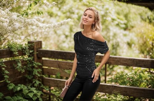 • Applicable Occasions This fashionable one-shoulder sequin top suits various occasions. Whether it's a romantic date night, lively parties, concerts, vacation trips, or various holiday celebrations (such as Halloween, Christmas, and New Year's Eve parties), it can make you stand out in any setting, becoming the center of attention