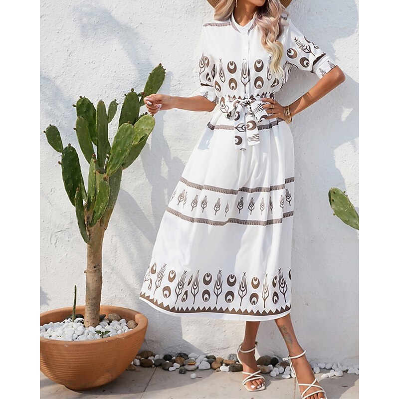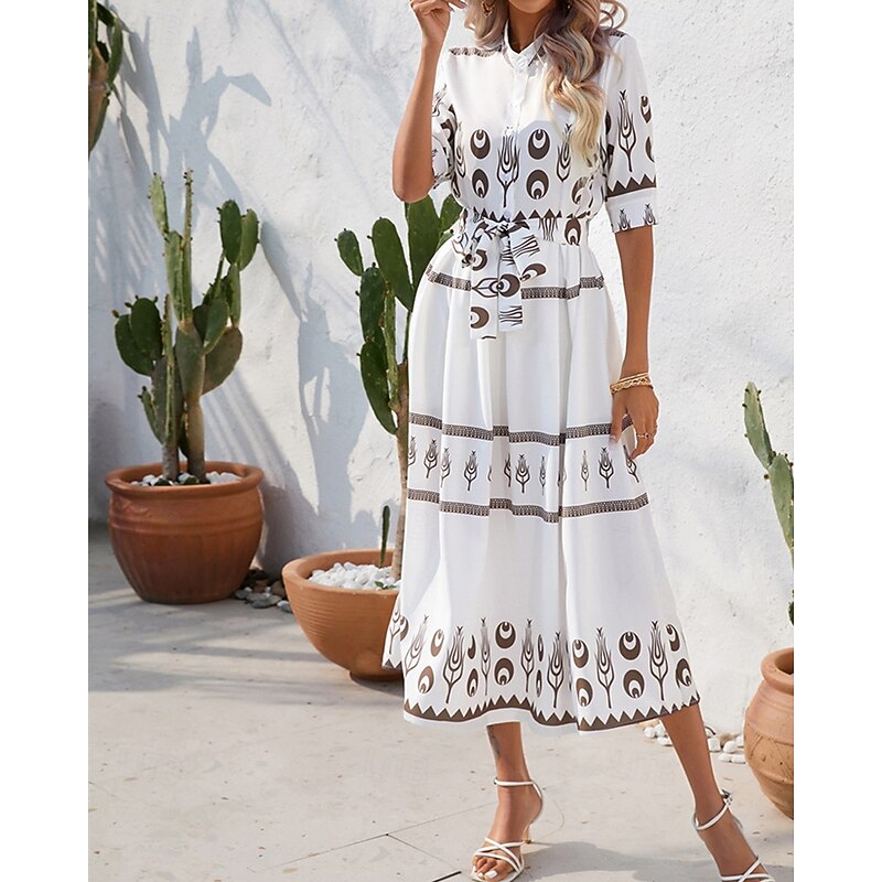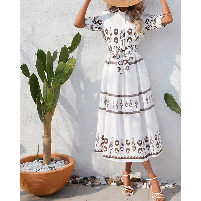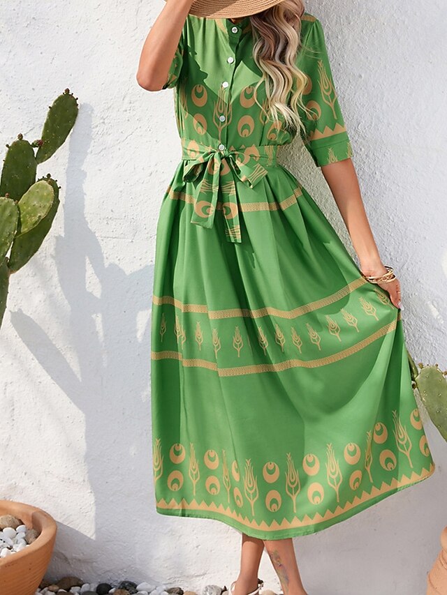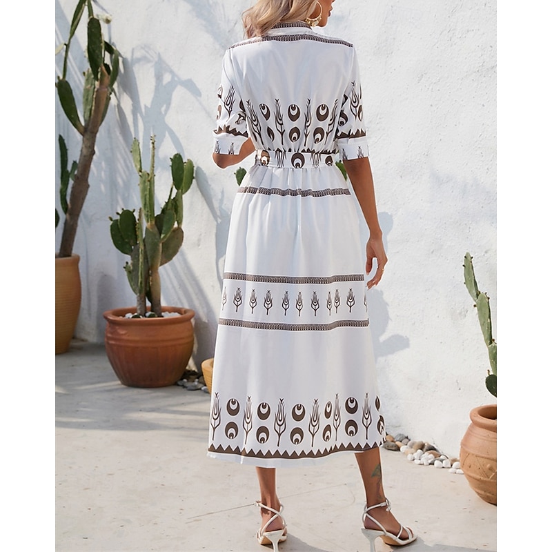 HOT ! Women's Long Dress Maxi Dress Casual Dress Summer Dress Boho Dress Fashion Outdoor Holiday Date Regular Fit Painting 3/4 Length Sleeve Shirt Collar Black White Green Summer Spring