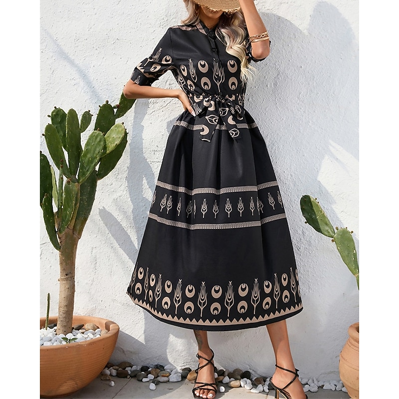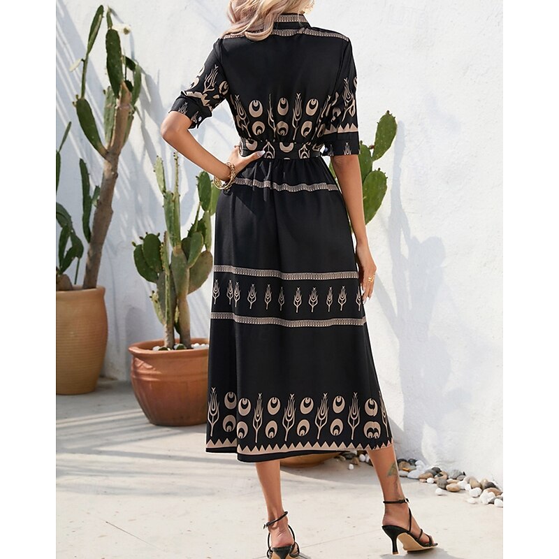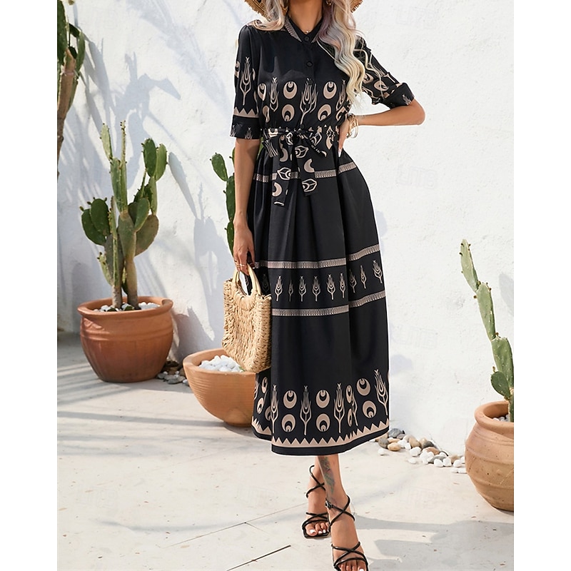 More information about Women's Long Dress Maxi Dress Casual Dress Summer Dress Boho Dress Fashion Outdoor Holiday Date Regular Fit Painting 3/4 Length Sleeve Shirt Collar Black White Green Summer Spring