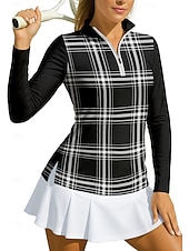 More information about Women's Plaid Checkered Tops Sport Shirt Golf Polo Shirt Tennis Shirt Long Sleeve Zipper Floral UPF50+ UV Resistant High Elasticity Moisture Wicking Breathable Tennis Golf Pickleball Stand Collar Zip