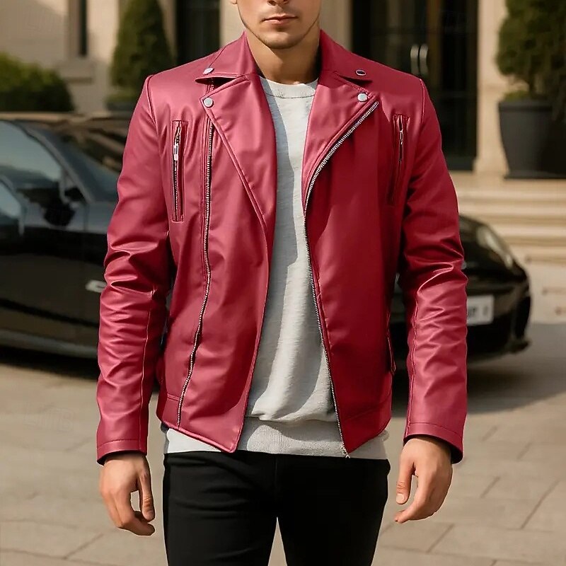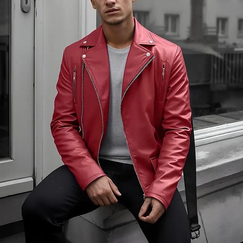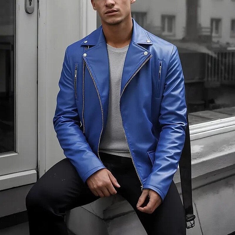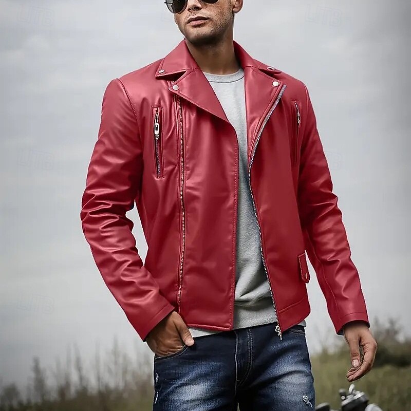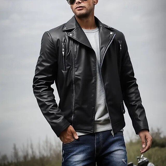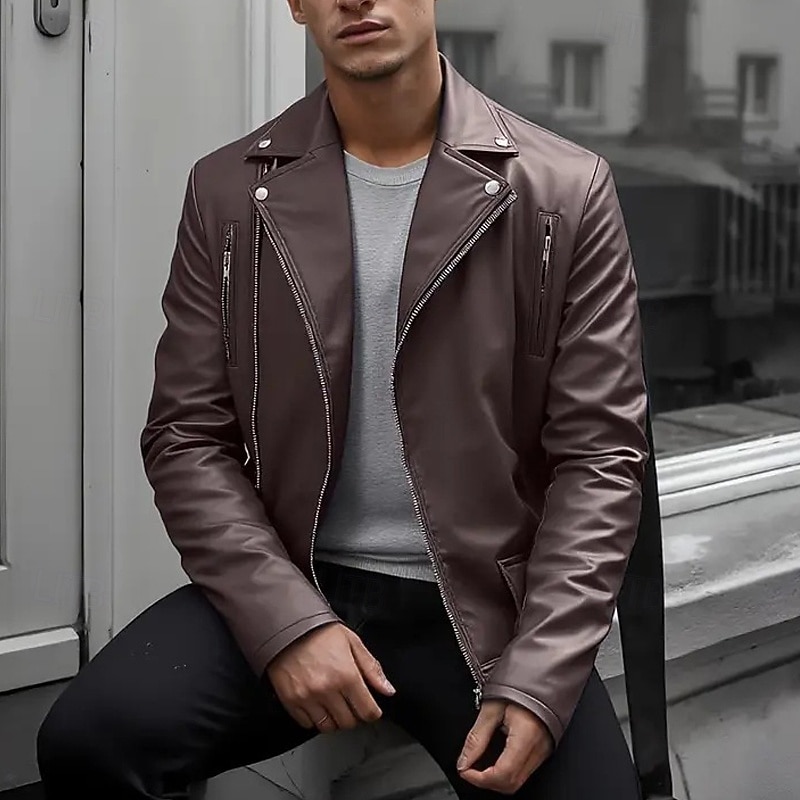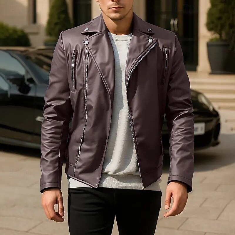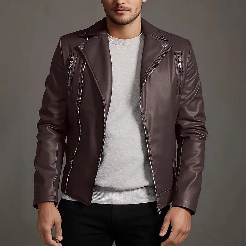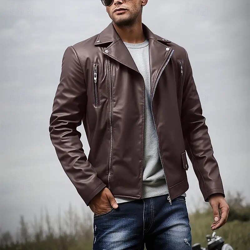 More information about Men's Faux Leather Jacket Biker Jacket Motorcycle Jacket Vacation Daily Windproof Warm Pocket Fall Winter Plain Fashion Classic Lapel Regular Black Wine Royal Blue Brown Jacket