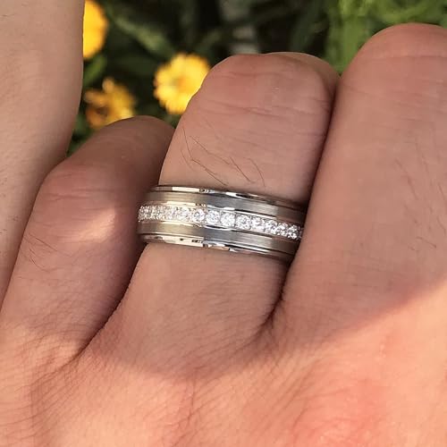 • ♥Men's Ring♥ 8mm wide cubic zirconia stones matte brushed tungsten rings for men. Scratch proof, durable and resistant to wear and tear.Perfect as wedding rings for couple who want to show off their eternal love in style.