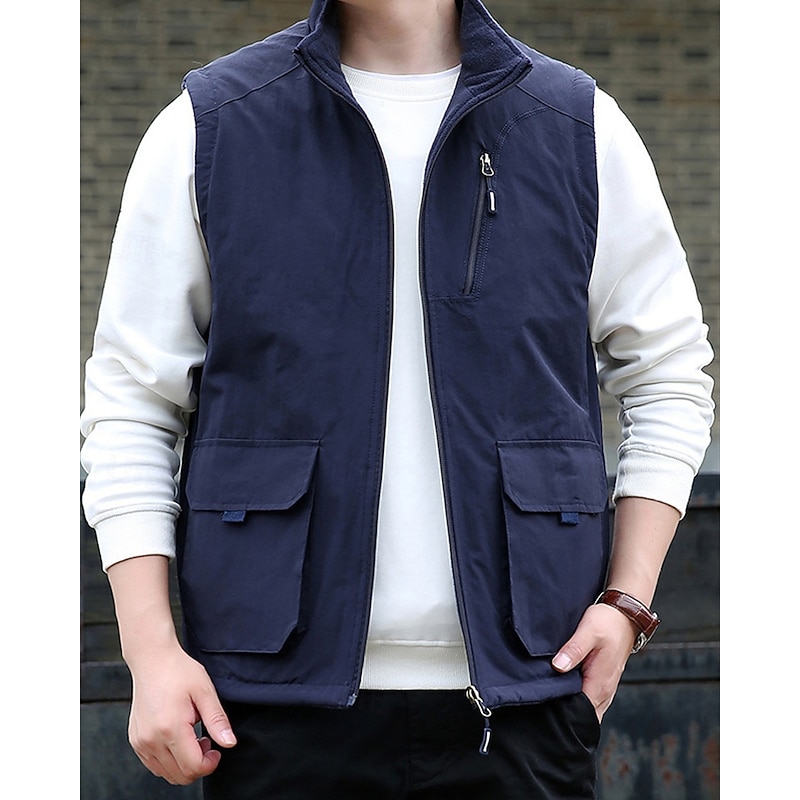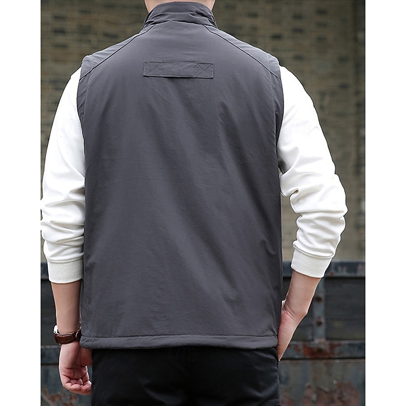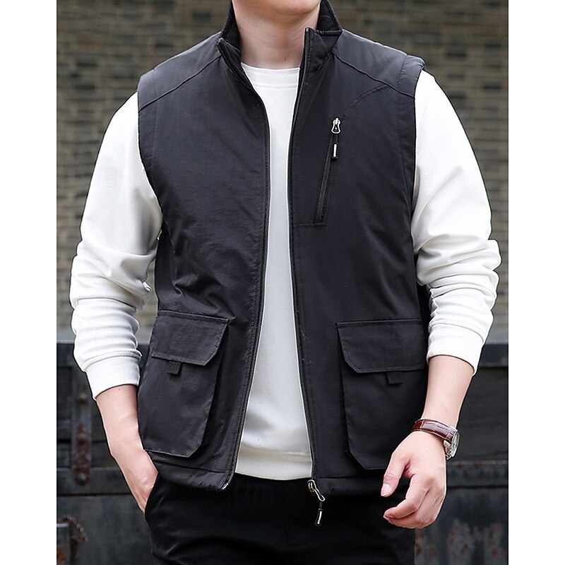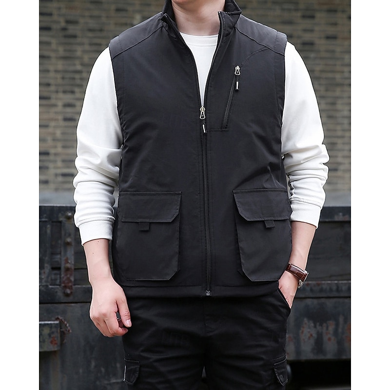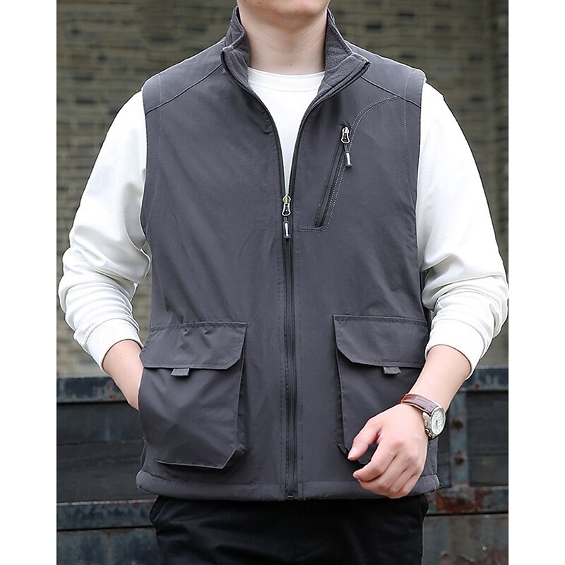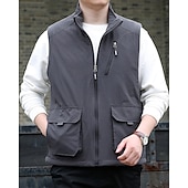 More information about Men's Vest Gilet Outdoor Daily Fashion Casual Spring Fall Pocket Nylon Comfortable Breathable Plain Zipper Stand Collar Regular Fit Black Khaki Army Green Dark Blue Vest