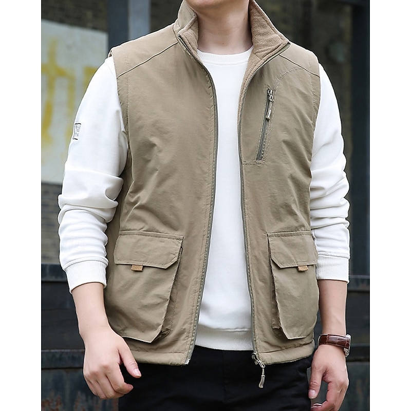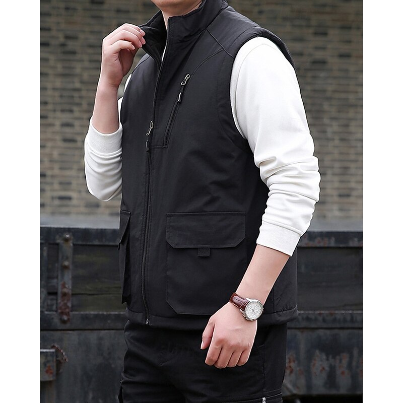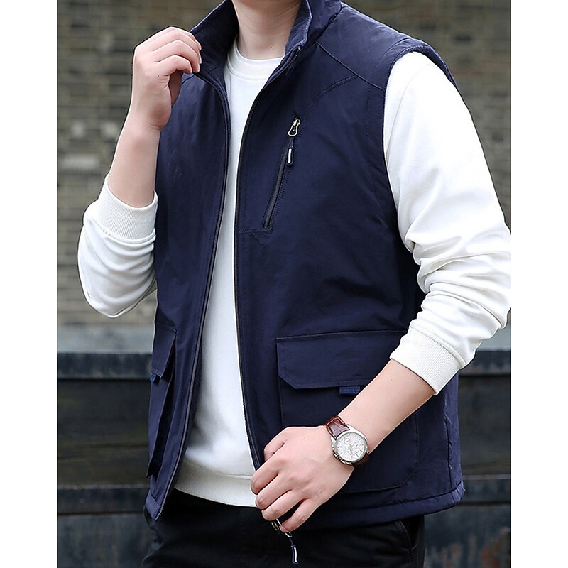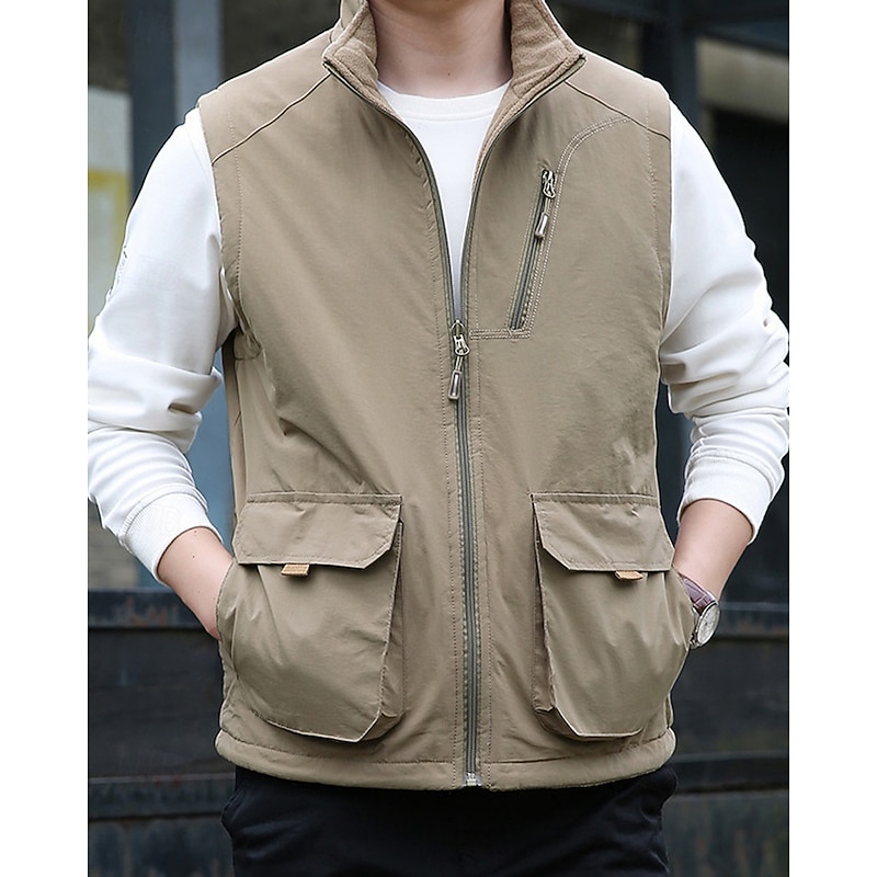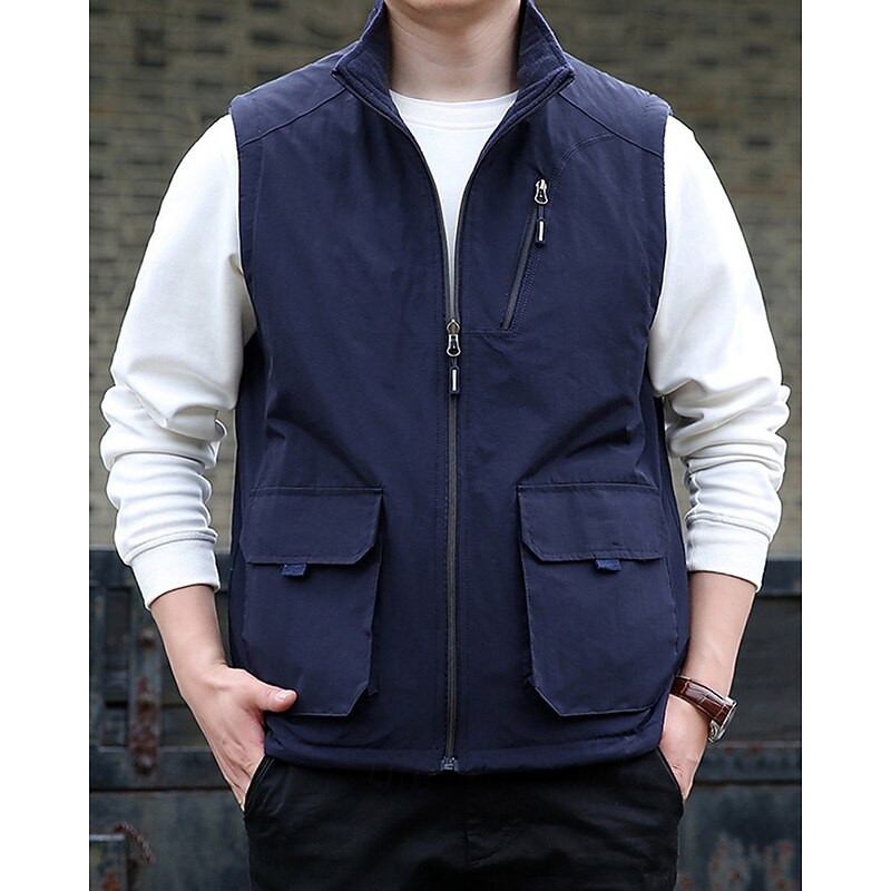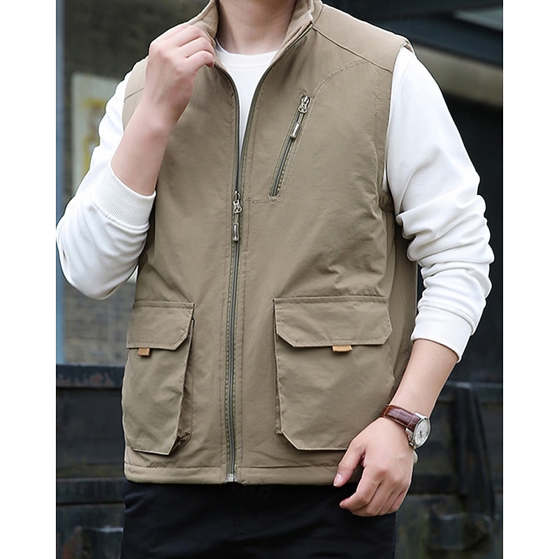 More information about Men's Vest Gilet Outdoor Daily Fashion Casual Spring Fall Pocket Nylon Comfortable Breathable Plain Zipper Stand Collar Regular Fit Black Khaki Army Green Dark Blue Vest
