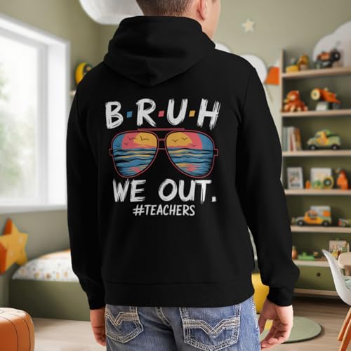 HOT ! Kids Funny Bruh We Out Teachers Happy Last Day Of School Retro Boys Girls Lightweight Kangaroo Pocket Fleece Hoodies