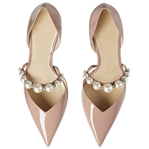 Women's Pointed Toe High Heels Pearl Embellished Strap Pumps Close Toe Stiletto Heeled Pumps for Wedding Party Dress Office