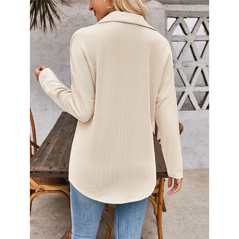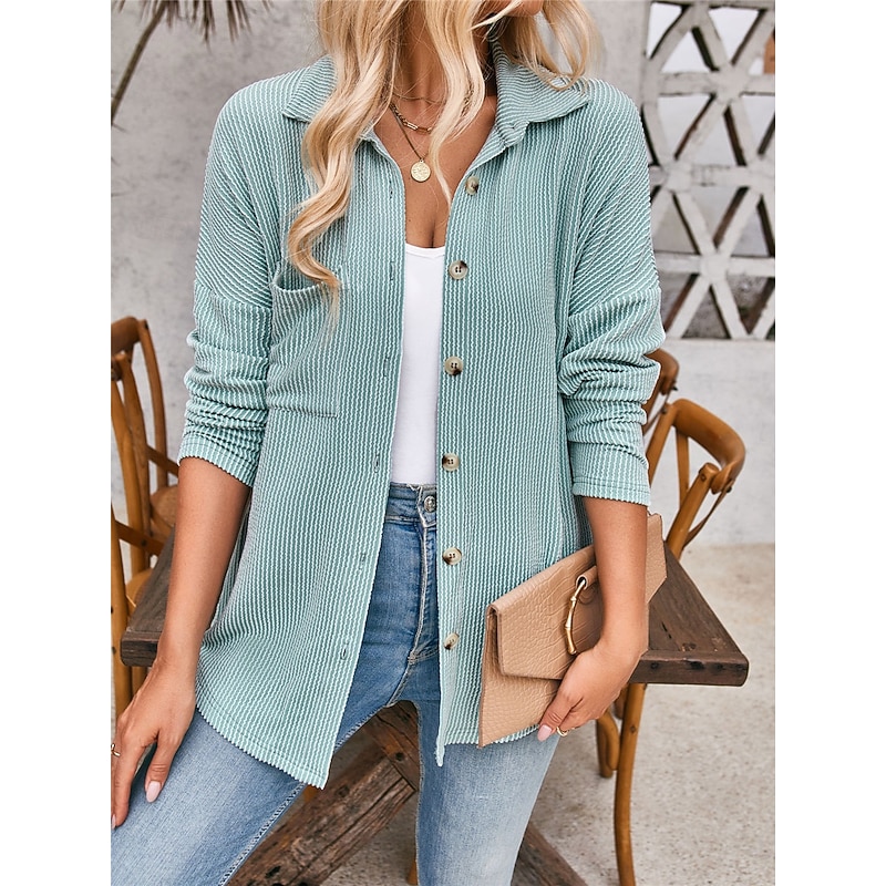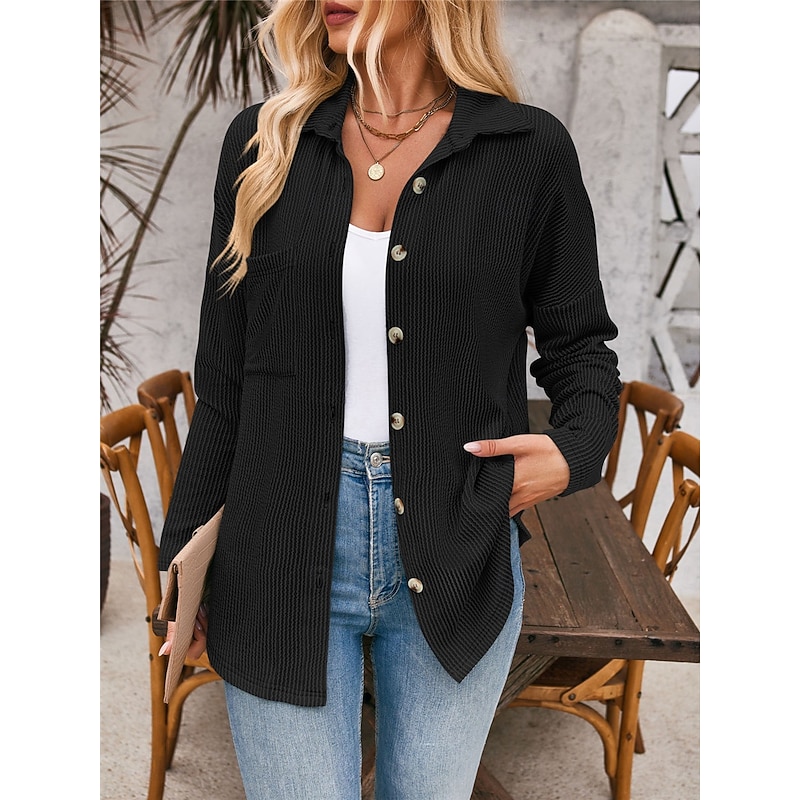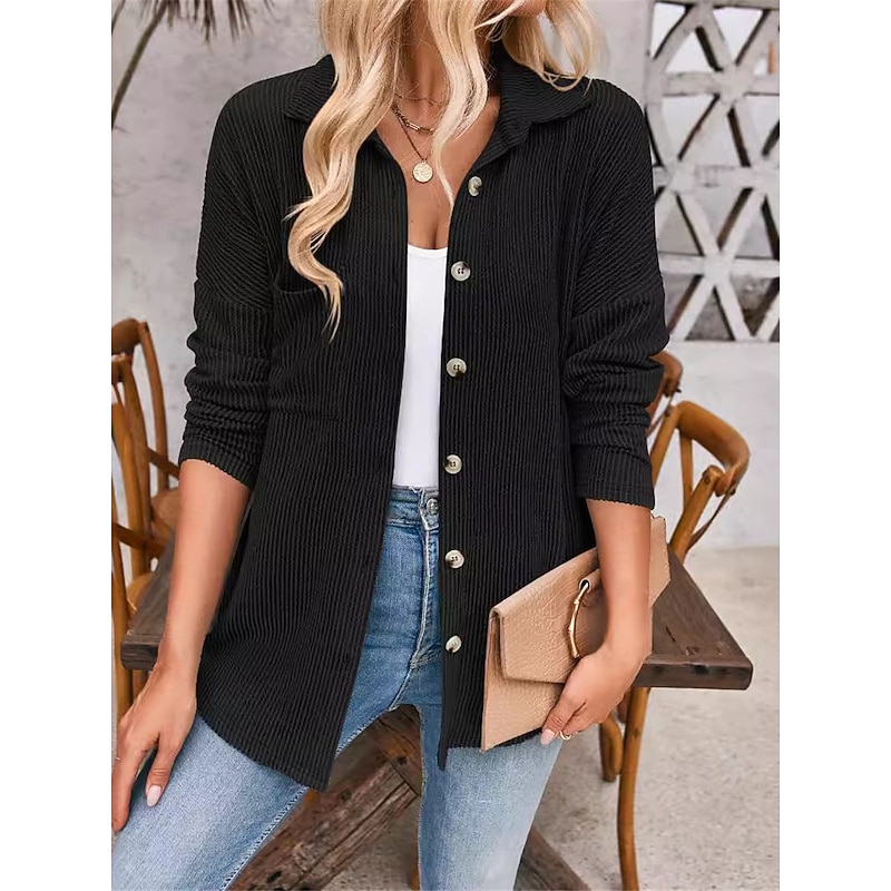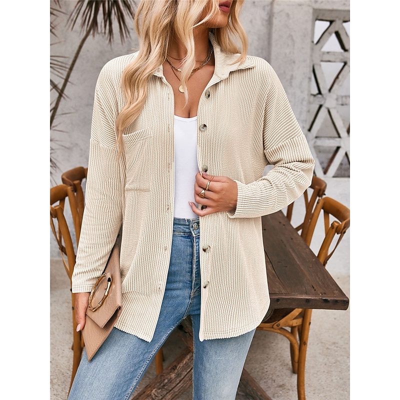 : Crafted from high-quality polyester, this women's casual jacket is designed to provide thermal warmth while remaining breathable. The soft, ribbed corduroy texture offers a cozy feel, perfect for autumn days.