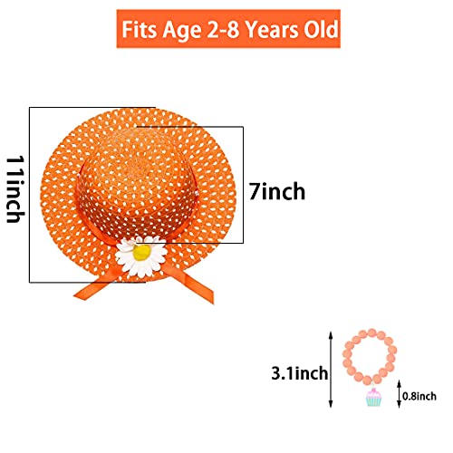 AIYUENCICI Tea Party Straw Hat 6 Girls Hats with Bracelet for Kids Dress Up Party Supplies 7
