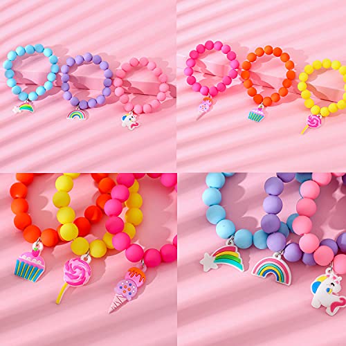 • 【Bracelet with Cute Unicorn】 With 6 vibrant colors and a special unicorn and candy design, the bracelet is very cute and full of childishness, it's easy to attract your little girls and put a big smile on their face with these trinkets.