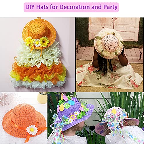AIYUENCICI Tea Party Straw Hat 6 Girls Hats with Bracelet for Kids Dress Up Party Supplies 3