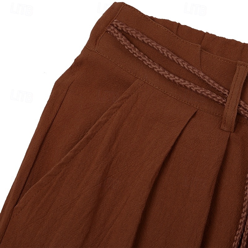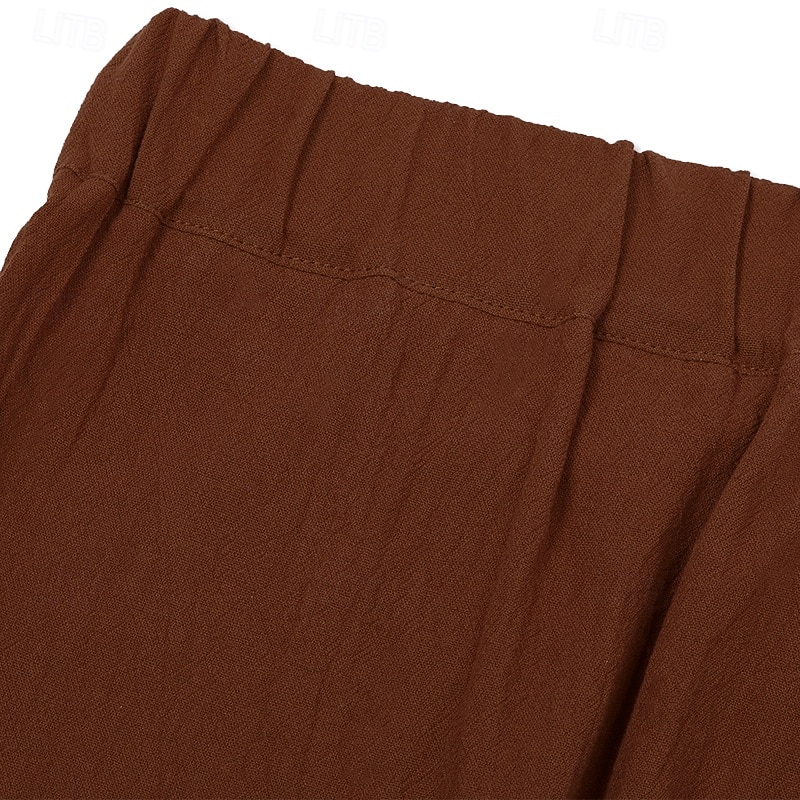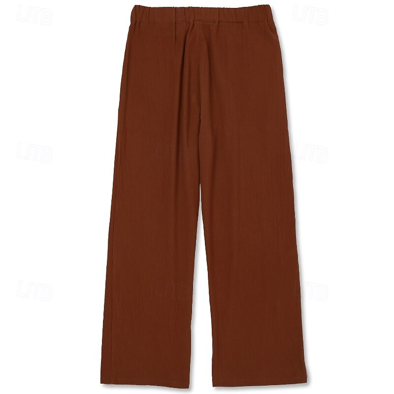 More information about Men's Linen Pants Trousers Summer Pants Baggy Pants Drawstring Elastic Waist Straight Leg Plain Comfort Breathable Full Length Outdoor Yoga Gym Designer Retro Vintage Dark Khaki