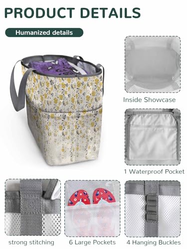60L HUGE STORAGE: 24L x 15.7H x 9W oversized mesh beach bag for women and men. The beach tote bag has 7 mesh pockets and 1 inner waterproof zippered pocket. Holds 4-6 beach towels, swimsuit, flip flop, sunglasses, camera, water bottle, toy, sunscreen and everything family beach travel need; put items where you want and stand upright land. And Inside the beach tote bag is a splash-proof zippered pocket to keep your valuables and electronics dry. Yellow Fallen Leaves SeamlessMESH TOTE BAG: Made of strong, ripstop, quick-drying mesh fabric. Keeps dry and sandless with a mesh material that take away unwanted sand; while allowing airflow to your wet towel, prevents water from lingering in your tote bag and odors.UTILITY TRAVEL BAG: Practical design with key chains and extra-reinforced trim. 4 handing buckles inside the large beach bag to hang your keys. Reinforced trims underneath the women's beach bag increases load carrying capacity. Weighing only 1 pound, the beach toy bag is easy to fold and lightweight so you won't feel any pressure when carrying the mesh tote bag, such perfect for travel and vacation.MULTIFUNCTIONAL TOTE BAG: A stylishly designed tote travel bag is the perfect gift for family and friend The lightweight bag is a must-have partner for beach trips, vacation, swimming pool, gym,stadium, travel and outdoor picnics. Also, the extra large capacity women's tote bags are perfect for kids toys, grocery store, supermarket, etc.WASHING INSTRUCTIONS: Machine washable. Tumble gently, do not use bleach. Please contact us for any questions, we will give you a satisfactory answer within 24 hours Perfect for everyday use. first-class materials and excellent craftsmanship ensure long-lasting durability.