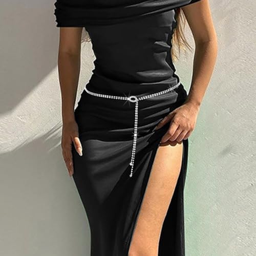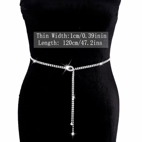 sought-after ! CanB Women Rhinestone Waist Belt Crystal Chain Belt Silver Thin Belts for Dress