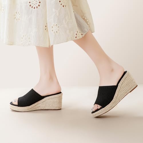 • Comfortable and Breathable: The wedge slide sandals made of knitted fabric are not only soft and skin-friendly but also possess excellent breathability, keeping feet cool in summer.