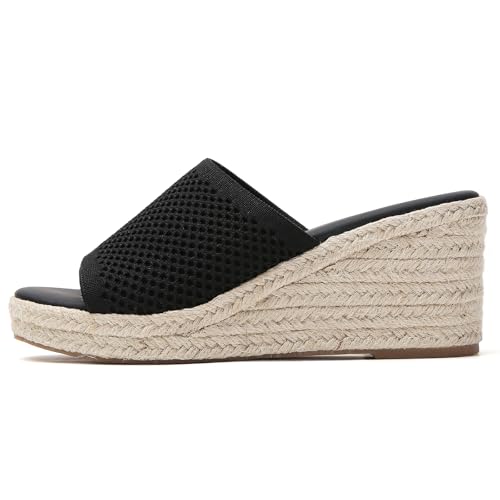 Tilocow Knit Espadrilles Wedges for Women Comfortable Slip On Platform Wedge Sandals Summer Beach Dress Heels Shoes 6