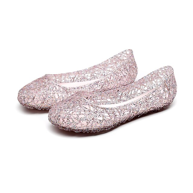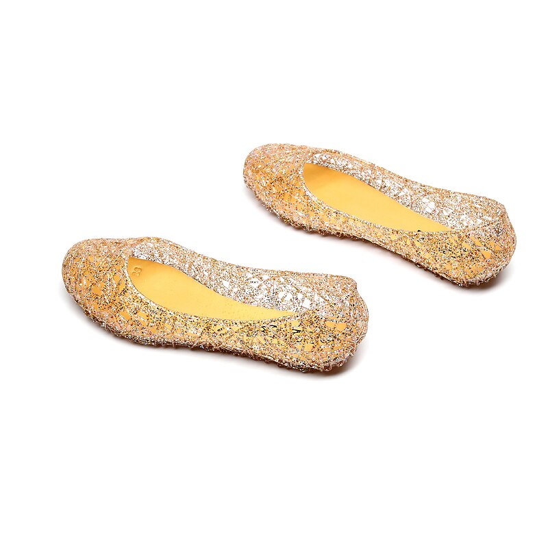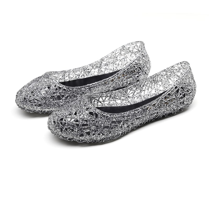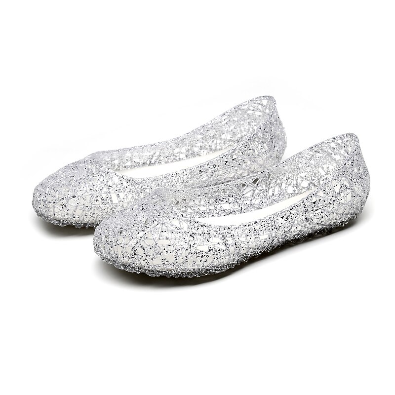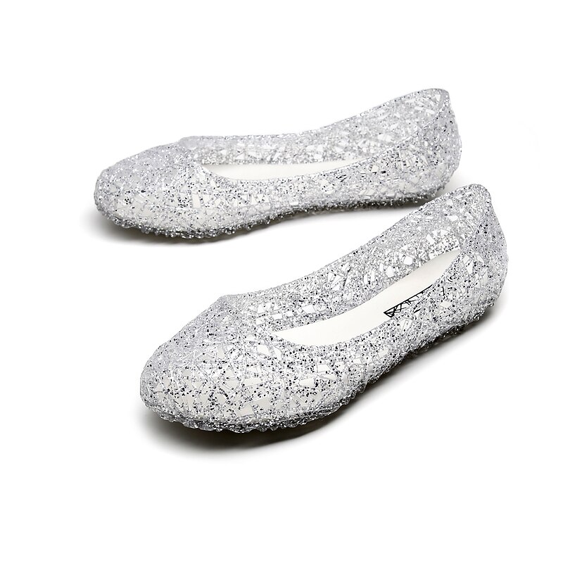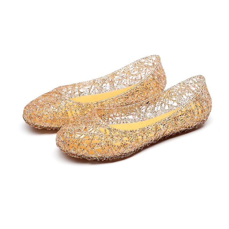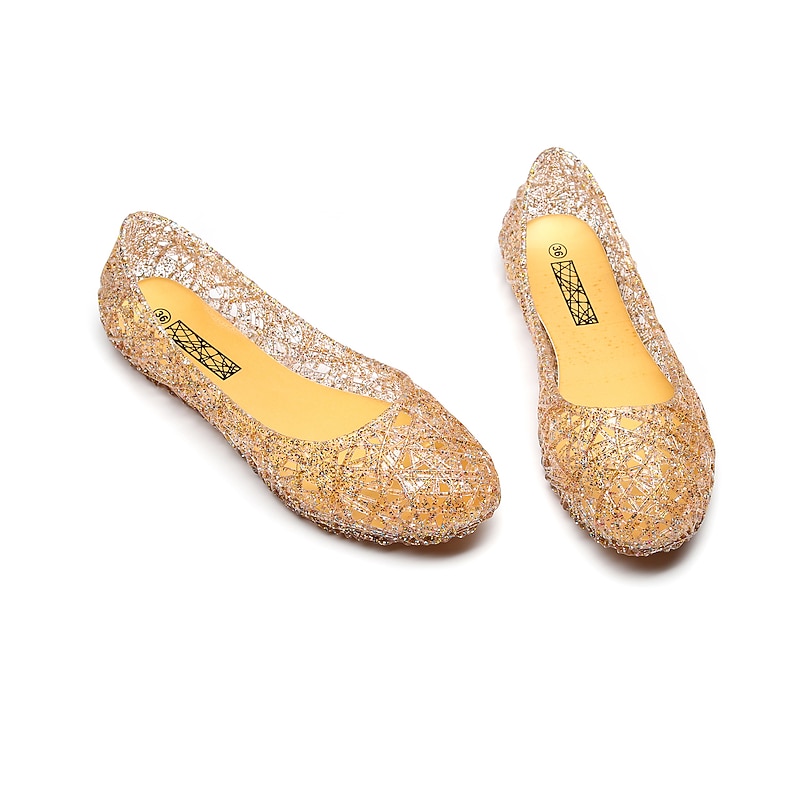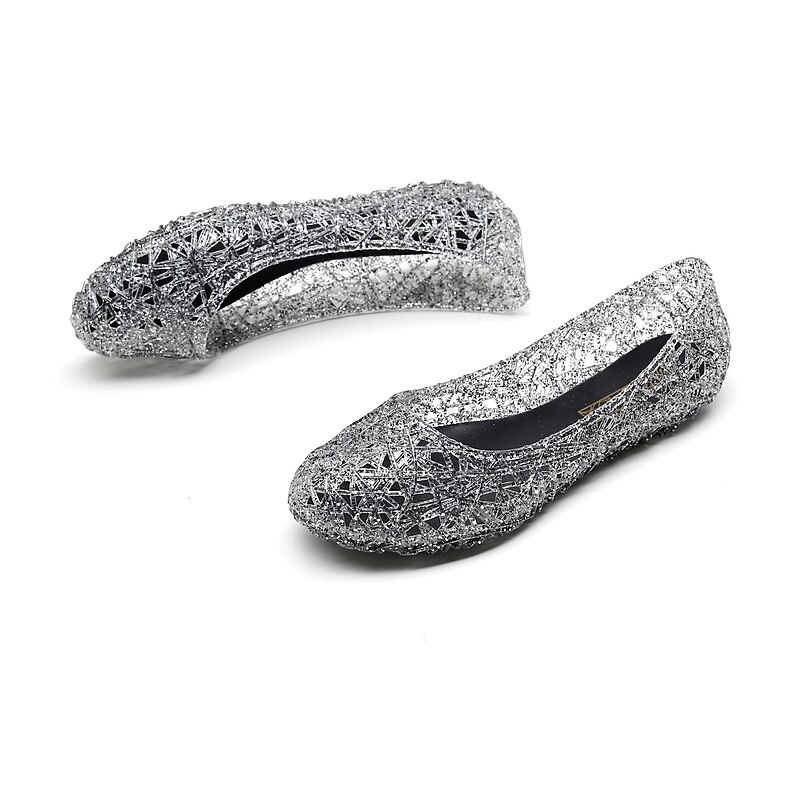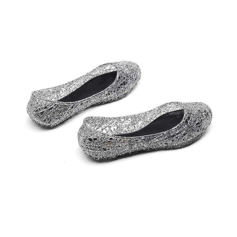 Highlights [Fabric and Material] : Crafted from high-quality PVC, these women's flats offer durability and a lightweight feel. The synthetic jelly material is not only flexible but also water-resistant, perfect for summer outings or any situation where you want both comfort and protection. [Fit and Silhouette] : These ballerina-style flats feature a sleek, round toe design and a flat heel, ensuring a comfortable, snug fit. The slip-on loafer style makes them easy to wear while maintaining a chic and casual aesthetic, ideal for daily adventures. [Design Highlights] : The flats are adorned with an enchanting solid color design available in shades of gold, black, silver, and pink. Their eye-catching glitter finish adds a touch of elegance, allowing them to stand out as a unique fashion statement. The refined silhouette is further enhanced by subtle sparkles embedded in the soft hues. [Occasions] : Perfect for daily wear, these versatile shoes are designed for a variety of summer activities. Whether you're spending a day at the beach or transitioning to a modern evening out, these jellies ensure your look remains both stylish and comfortable. [Size Range] : Available in sizes 36 through 41, these flats cater to a broad range of foot sizes, offering an excellent fit for different wearers. Make sure to check the provided size chart to find your perfect match. Perfect for everyday use. excellent materials and excellent craftsmanship ensure long-lasting durability.