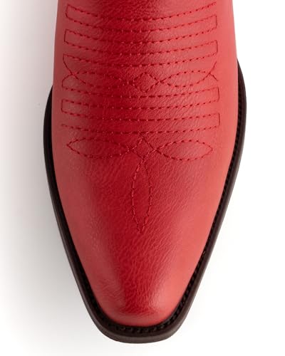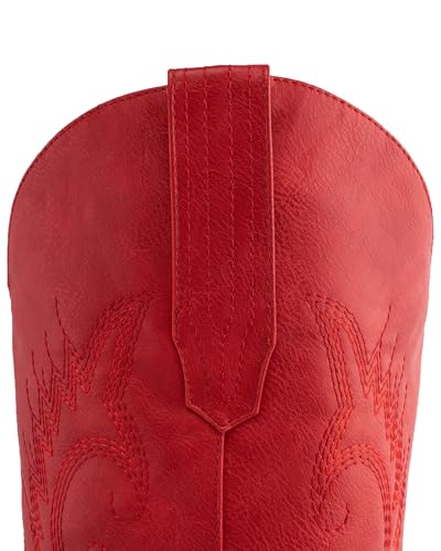 DREAMCIA Red Cowboy Boots for Women Vintage Western boots with Embroidery and Chunky Heel, Mid Calf Height Embroidered Cowgirl Boots 5