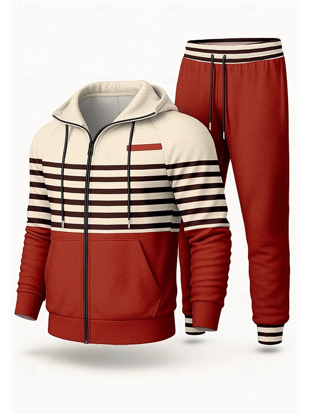 $41.99 - Christmas Men's Hoodie Tracksuit 2 Piece Tracksuit Drawstring Zip Up Striped Athletic Clothing Set Clothing Suit Fall Red Blue Vocation Outdoor Travel Lightweight Fashion Long Sleeve Sport Activewear 2025. Shop for cheap Tracksuits online? Buy at lightinthebox.com on sale today!