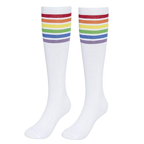 KONY Women's Cotton Colorful Striped Rainbow Knee High Socks 1/3 Pairs, Comfortable Stay Up Best Gift Size 6-10 6