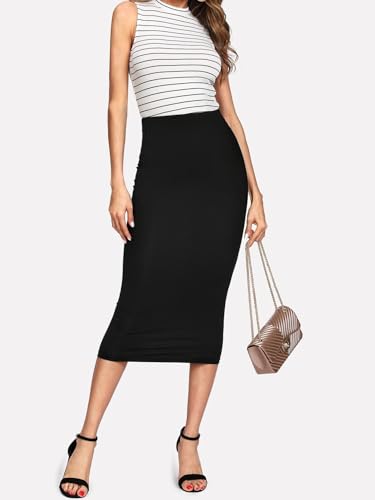 More information about Womens Elastic Waist Pencil Midi Skirt Knee Length Skirts for Women