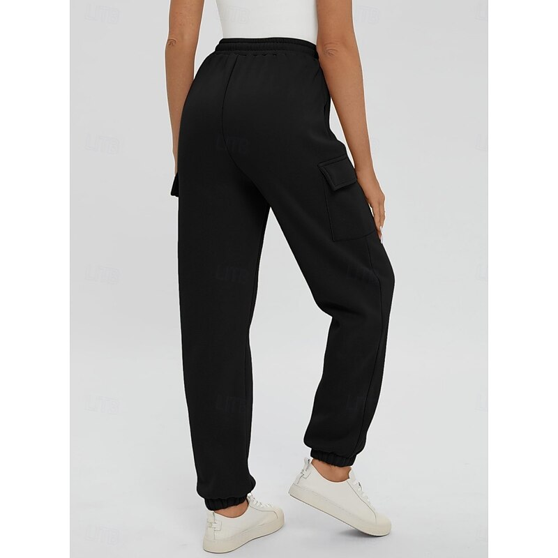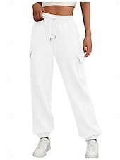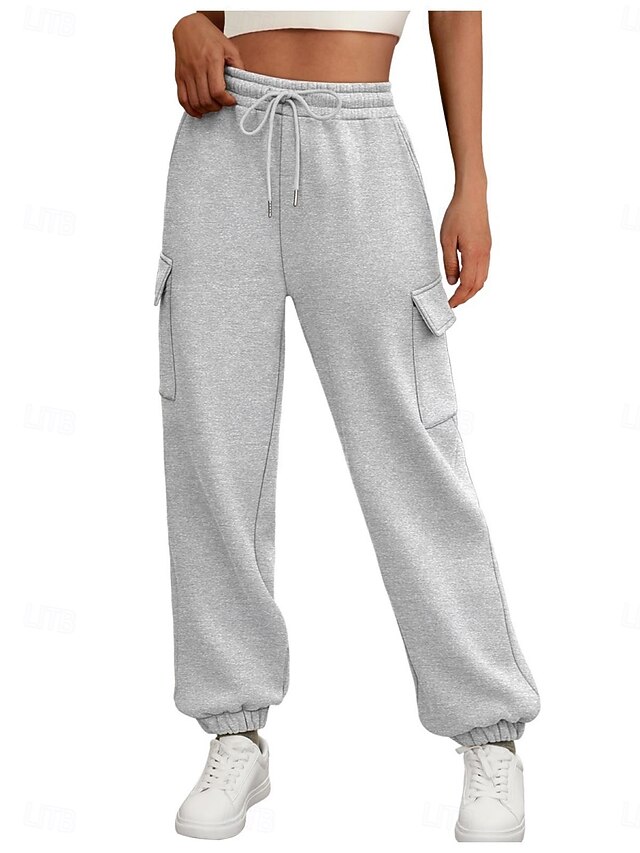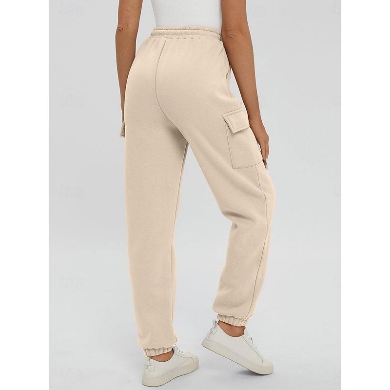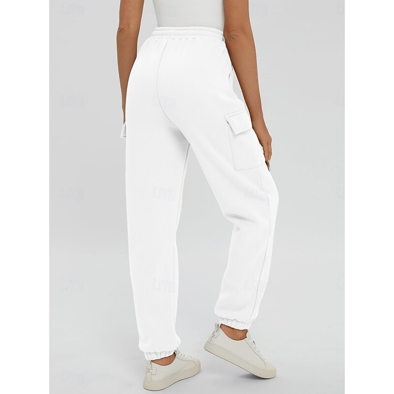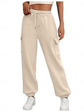 More information about Women's Sweatpants Chinos Fashion Streetwear Basic Full Length High Waist Plain Pocket Elastic Waistband Comfy Soft Comfortable Stretchy Outdoor Street Black White Beige Gray Summer Spring Loose Fit