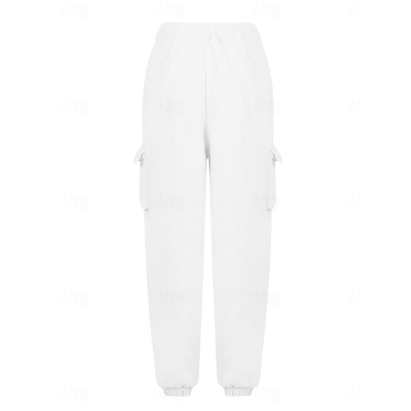 HOT ! Women's Sweatpants Chinos Fashion Streetwear Basic Full Length High Waist Plain Pocket Elastic Waistband Comfy Soft Comfortable Stretchy Outdoor Street Black White Beige Gray Summer Spring Loose Fit