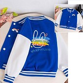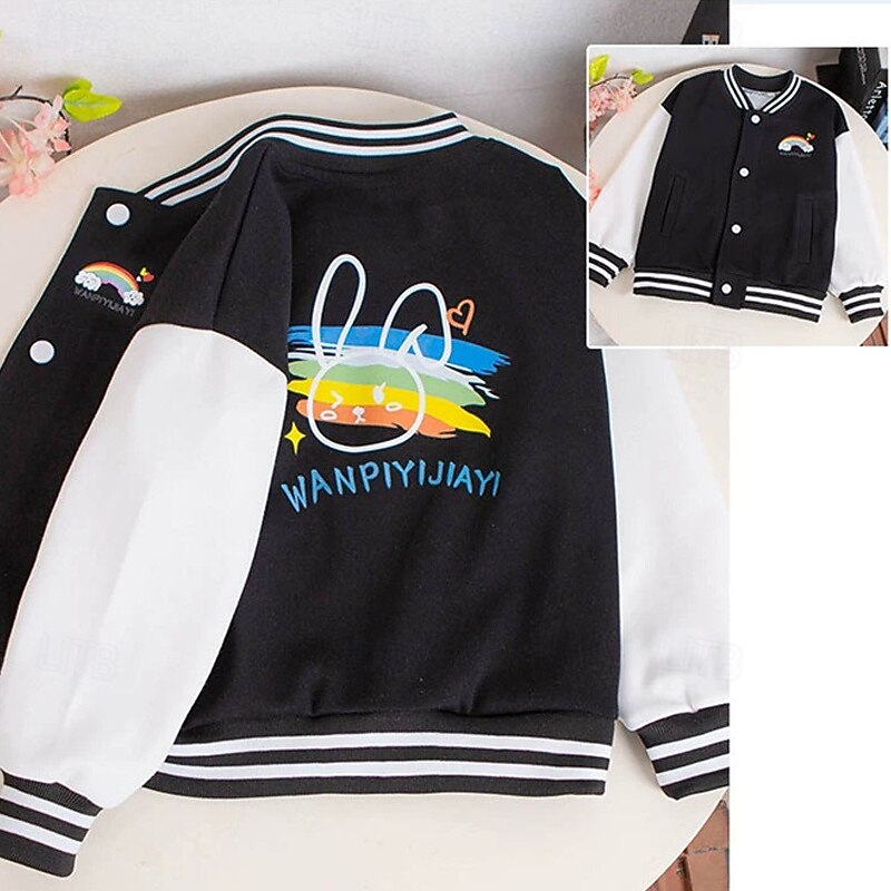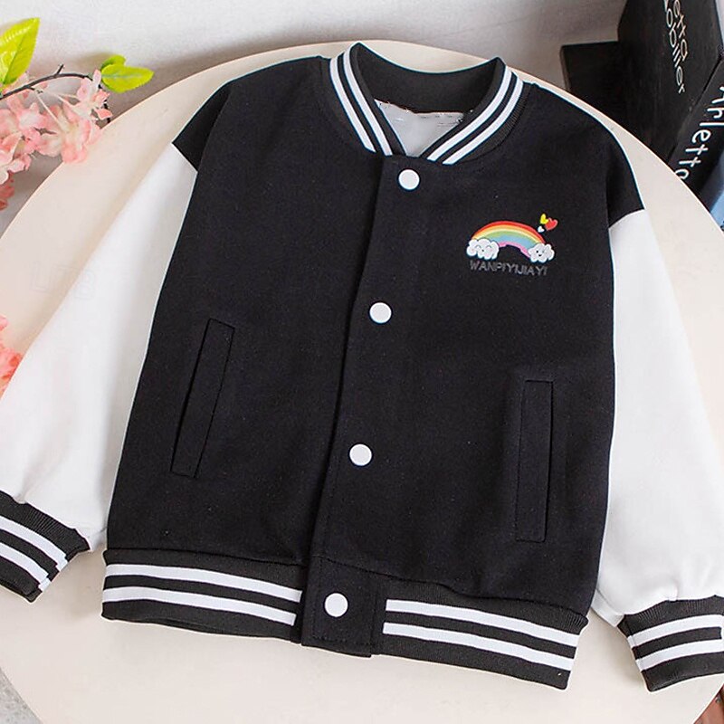 Kids Girls' Baseball Jacket Rainbow Sports Comfort Buttons Soft School Cotton Coat Outerwear 4 years+ Fall Black Pink Blue 11