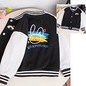 More information about Kids Girls' Baseball Jacket Rainbow Sports Comfort Buttons Soft School Cotton Coat Outerwear 4 years+ Fall Black Pink Blue
