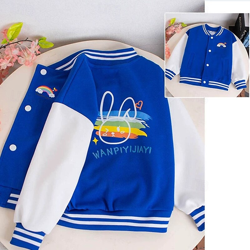 HOT ! Kids Girls' Baseball Jacket Rainbow Sports Comfort Buttons Soft School Cotton Coat Outerwear 4 years+ Fall Black Pink Blue