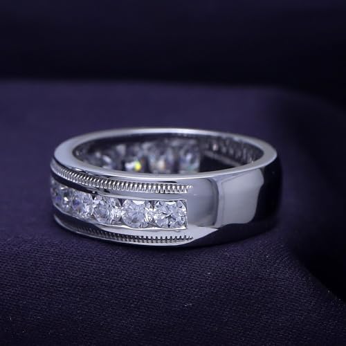 Men Wedding Band Ring 2.00 Cttw Natural Diamond or lab Grown Diamond 7.5MM Width Milgrain Half Eternity Engagement Rings in 10K or 14K Solid Gold & 925 Sterling Silver Jewelry Gift for Him 5