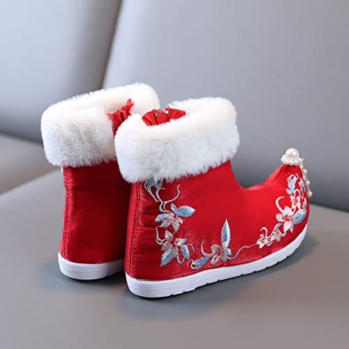 Toddler Gilrs Rubber Sole Warm Winter Snow Boots Embroidery Print Cloth Boots Toddler Shoes Girl 6 6