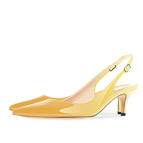 Lutalica W Women's Patent Leather Pointed Toe Basic Comfortable Kitten Heel Slingback Pumps Shoes 5