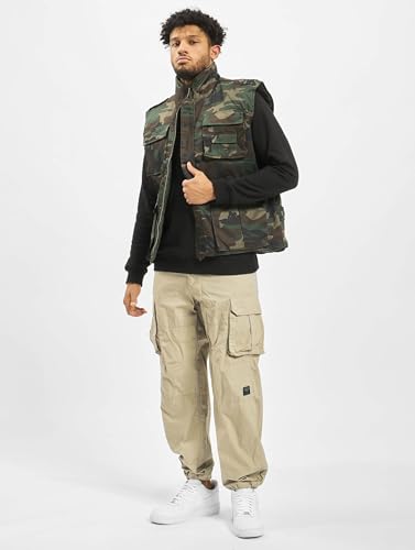• Lightly padded, sleeveless vest for outdoor use. Full-length front zipper behind the wind flap with press stud buttons. Five outer pockets with hook-and-loop closure