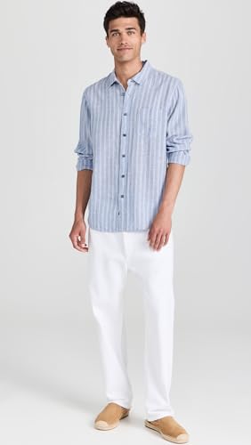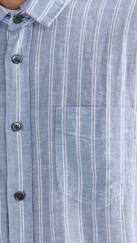• Collared neck and button placket, Long sleeves with button cuffs, Patch breast pocket , Curved hem, Striped pattern