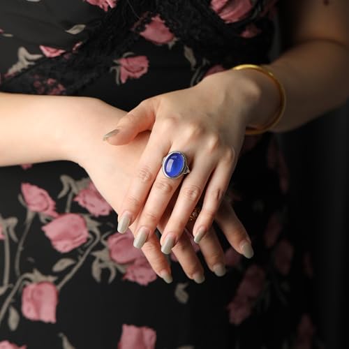 HOT ! Oval Mood Ring for Women - Vintage 925 Sterling Silver Rings with Large 18mm Temperature Sensitive Stone, Color Changing Emotional Healing Jewelry, Sentimental Gift for He