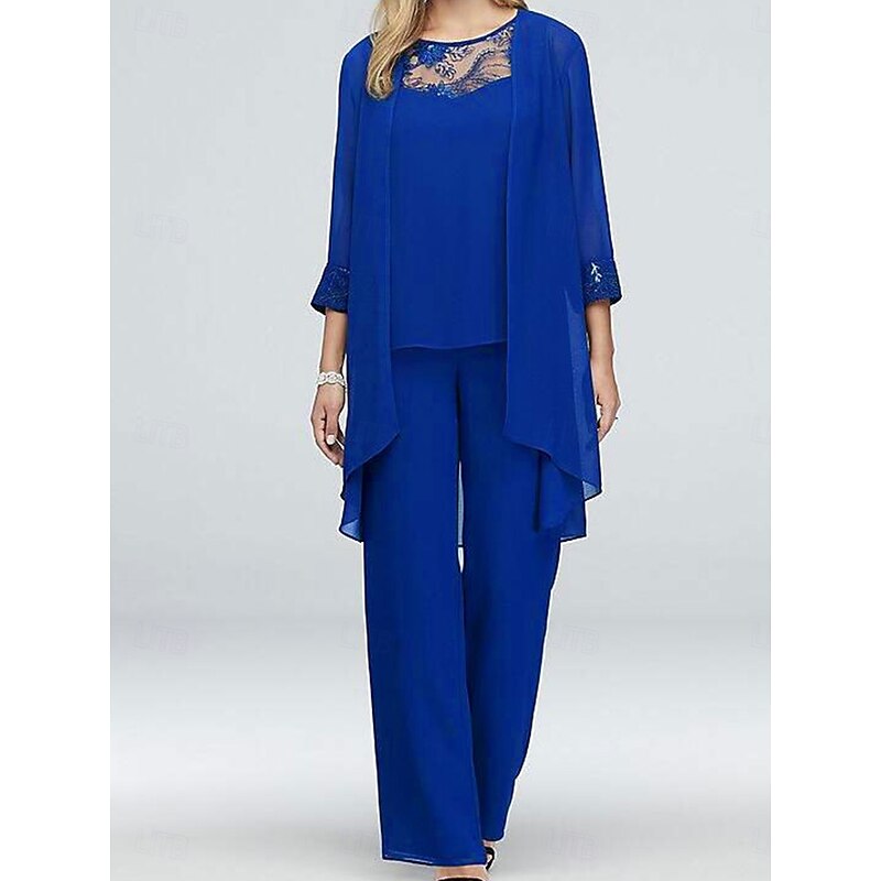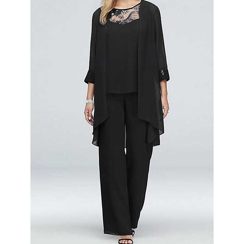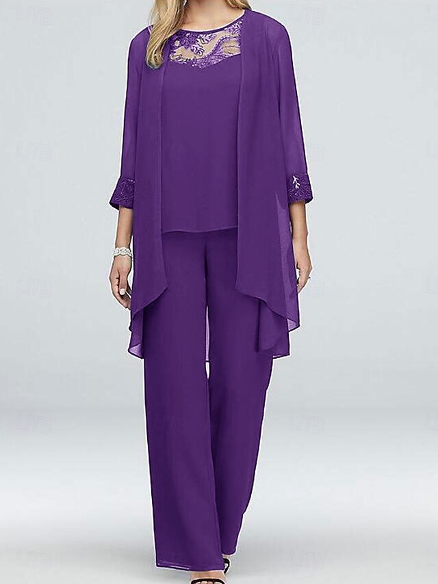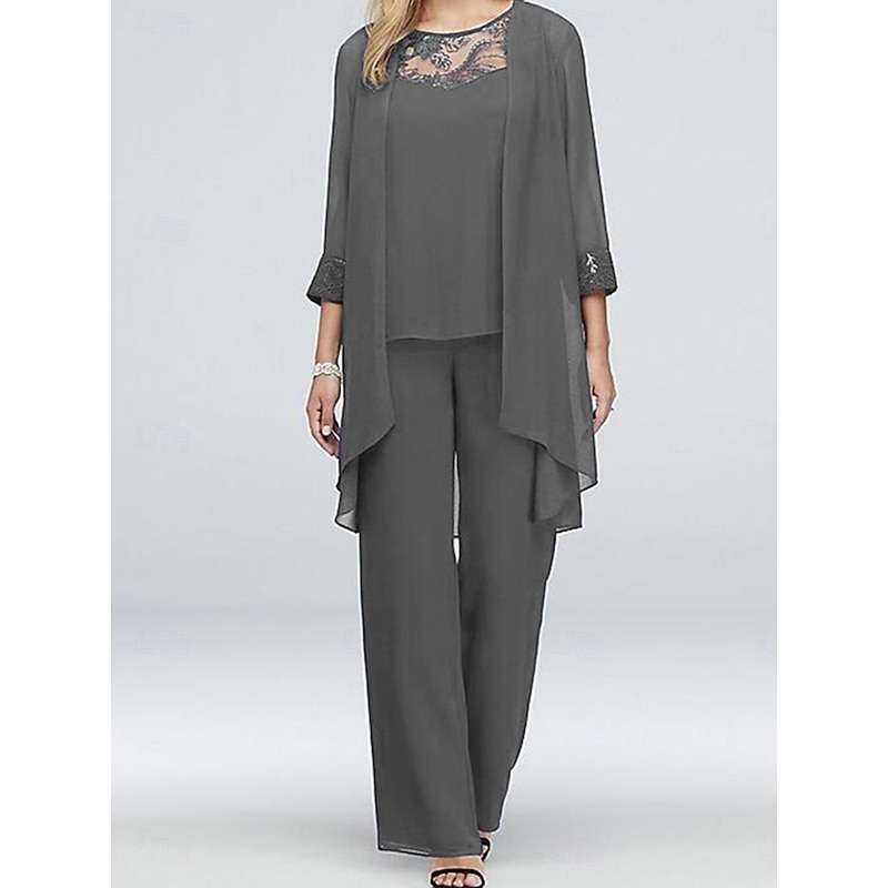 More information about Pantsuit Mother of the Bride Elegant Casual Jewel Neck Floor Length Polyester Long Sleeve with Lace