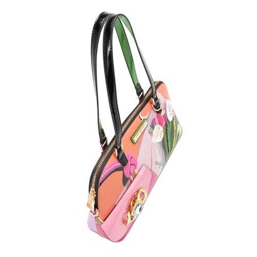 HOT ! Nicole Lee Violet Blossom Dome Shoulder Bag, Vegan Leather, Beaded Applique Detail