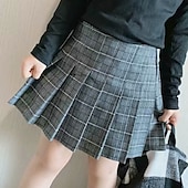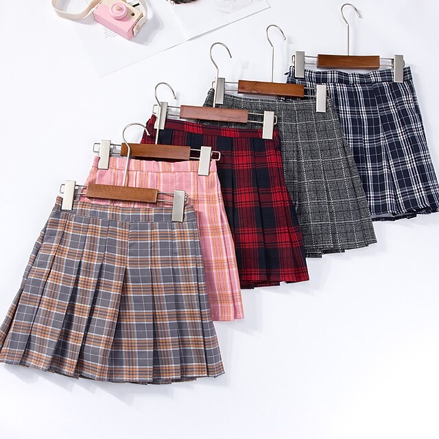 Kids Girls' Skirt Plaid Active School 7-13 Years Winter Black Pink Light gray 8