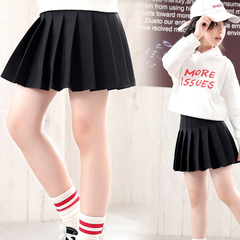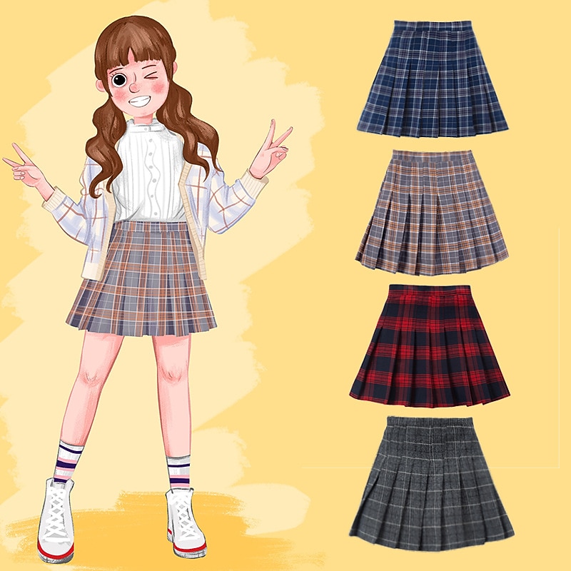 HOT ! Kids Girls' Skirt Plaid Active School 7-13 Years Winter Black Pink Light gray