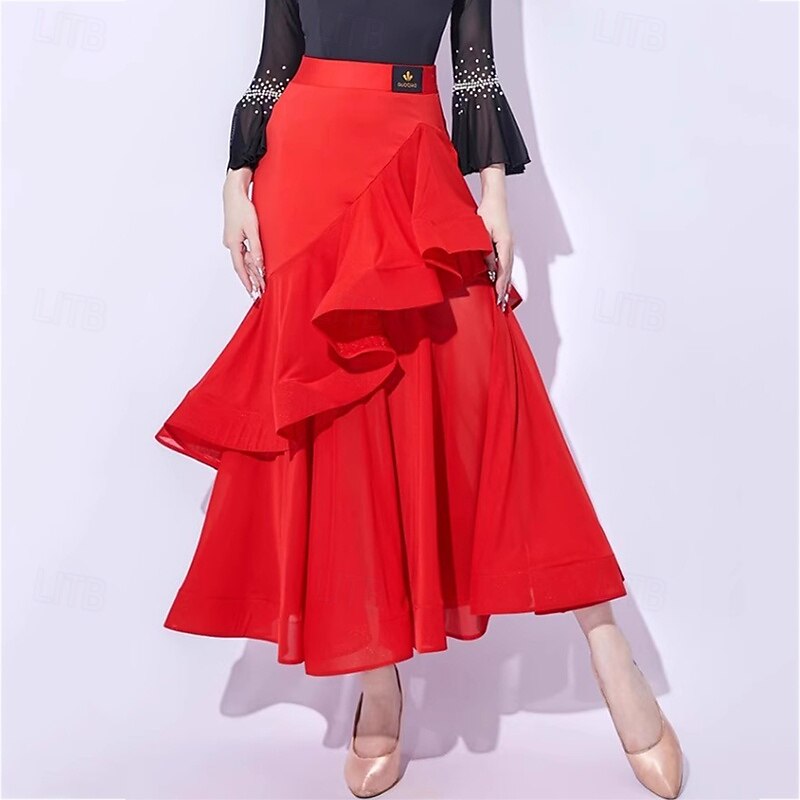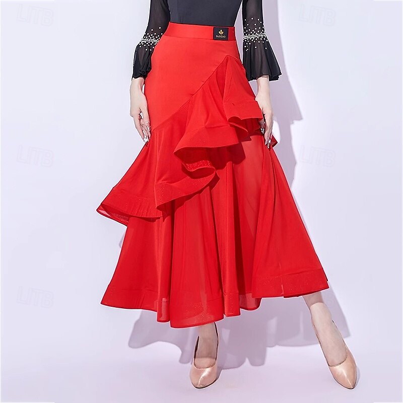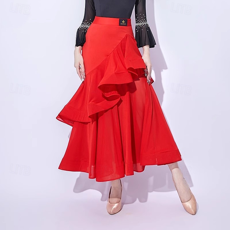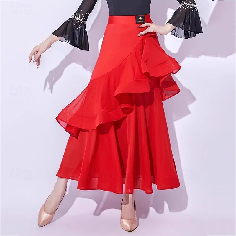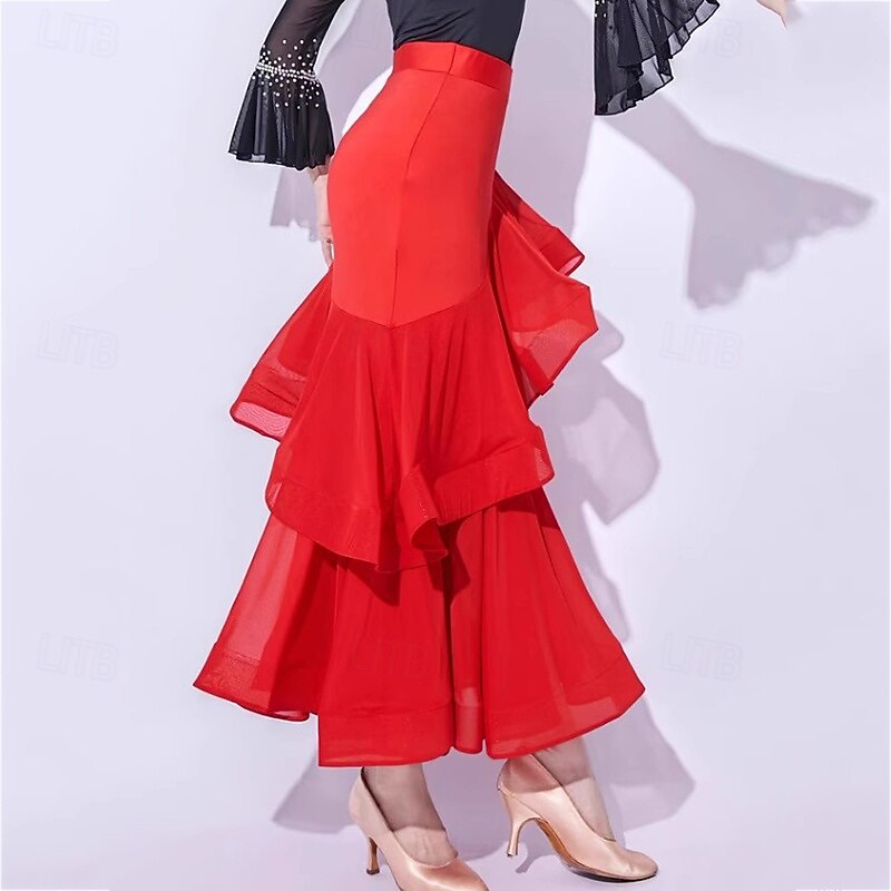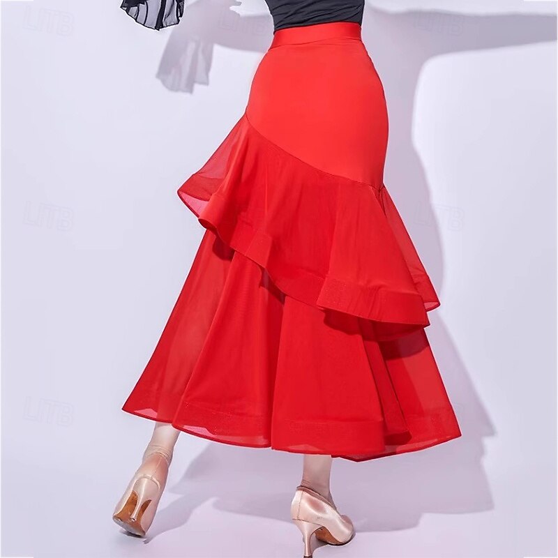 Ballroom Dance Skirts Ruffles Pure Color Splicing Women's Performance Training Mesh Milk Fiber 5