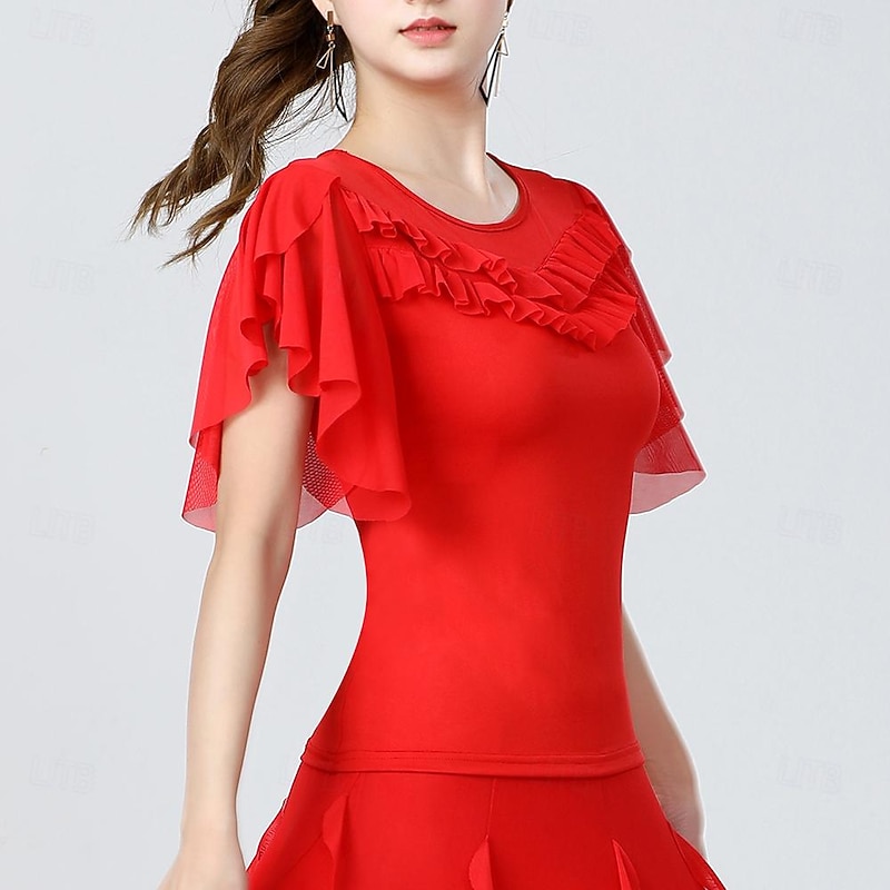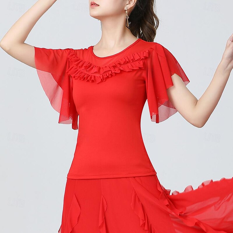 $37.99 - Latin Dance Ballroom Dance Top Pure Color Splicing Tulle Women's Performance Training Short Sleeve High Polyester 2025. Shop for cheap Tops & Sets online? Buy at lightinthebox.com on sale today!