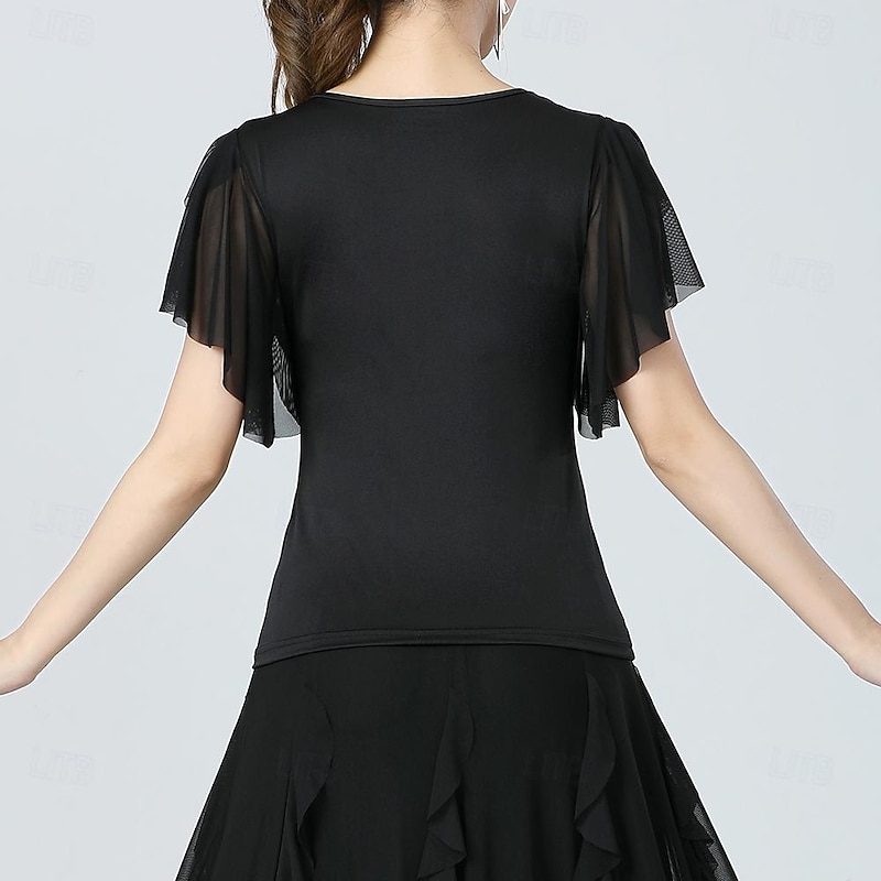 Latin Dance Ballroom Dance Top Pure Color Splicing Tulle Women's Performance Training Short Sleeve High Polyester 13