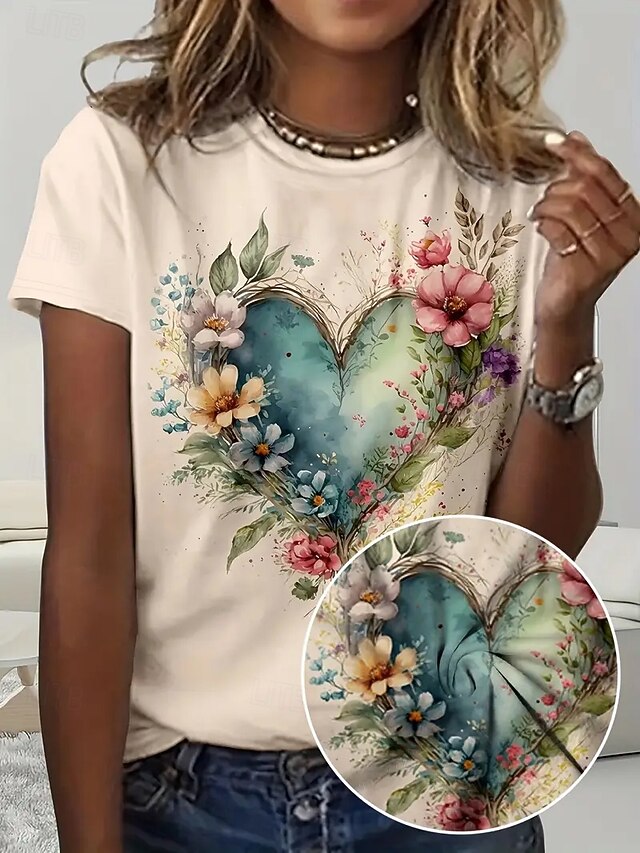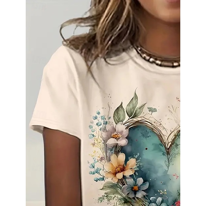 HOT ! Women's T Shirt Summer Tops Heart Graphic Classic Casual Short Sleeve Crew Neck Crop Tops Daily Weekend Print Rainbow Summer Spring Fall