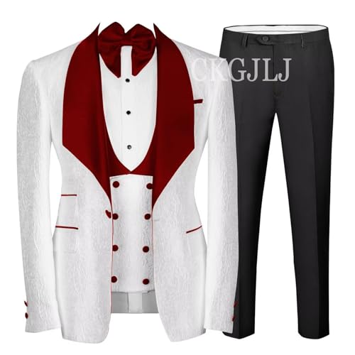 Floral Jacquard 3 Piece Suit for Men Slim Fit Double Breasted Tuxedo Suits Wedding One Button Blazer Shawl Lapel 3