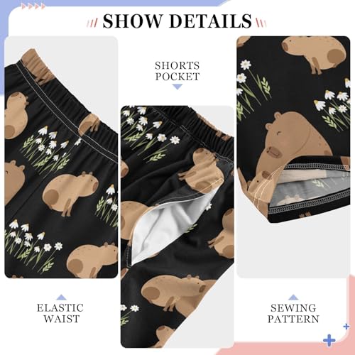 More information about Boys' Pants Animal Capybara White Flower Leaf Long Bottoms Jogger Pants Elastic Waist Trousers with Pockets S-XL
