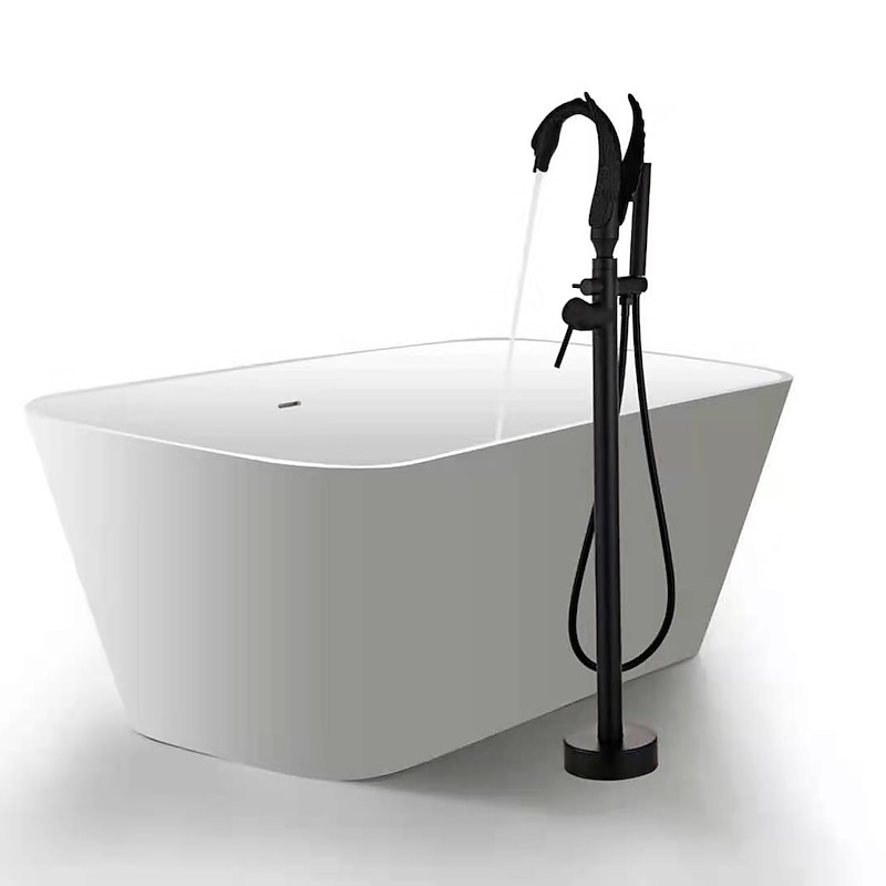 Bathtub Faucet - Contemporary Chrome Floor Mounted Ceramic Valve Bath Shower Mixer Taps 17