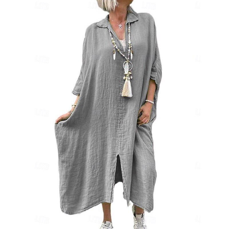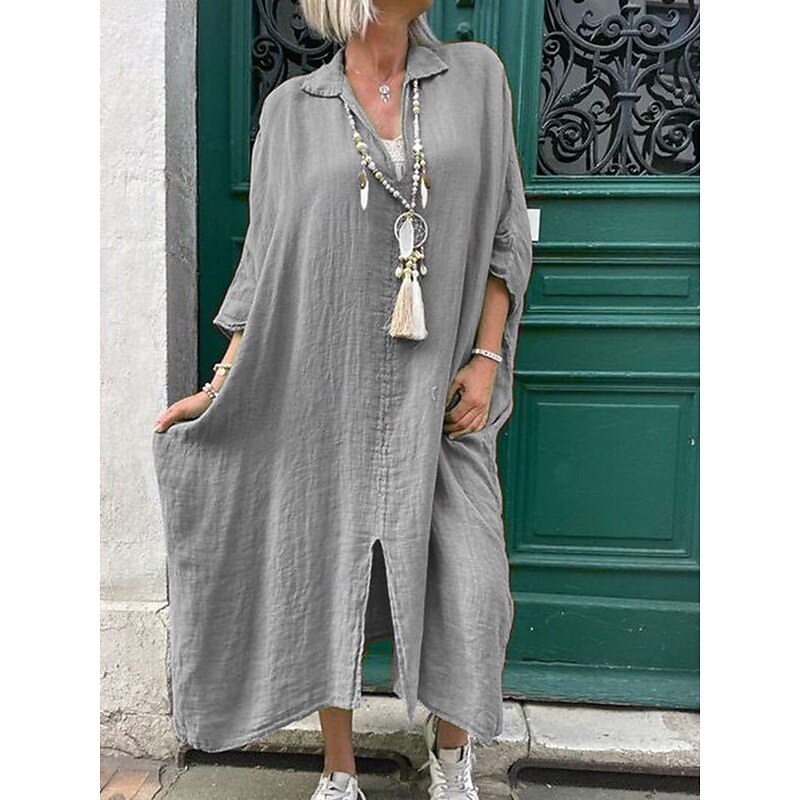 More information about Women's White Rose Red Gray Spring Fall Maxi Dress Linen-Inspired Dresses Elegant Fashion Holiday Date Loose Fit Shirt Collar